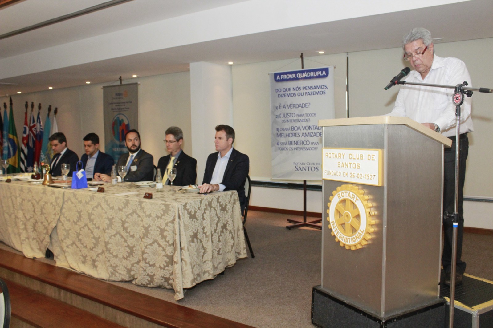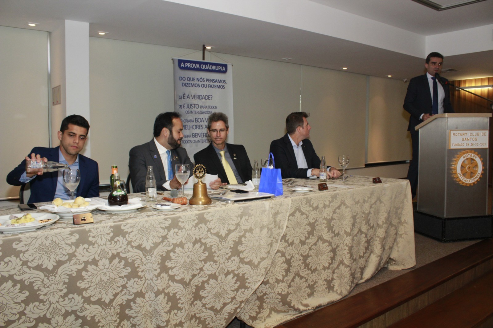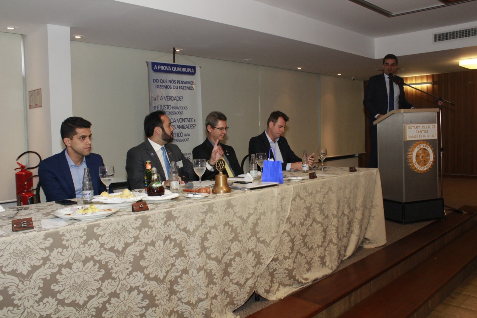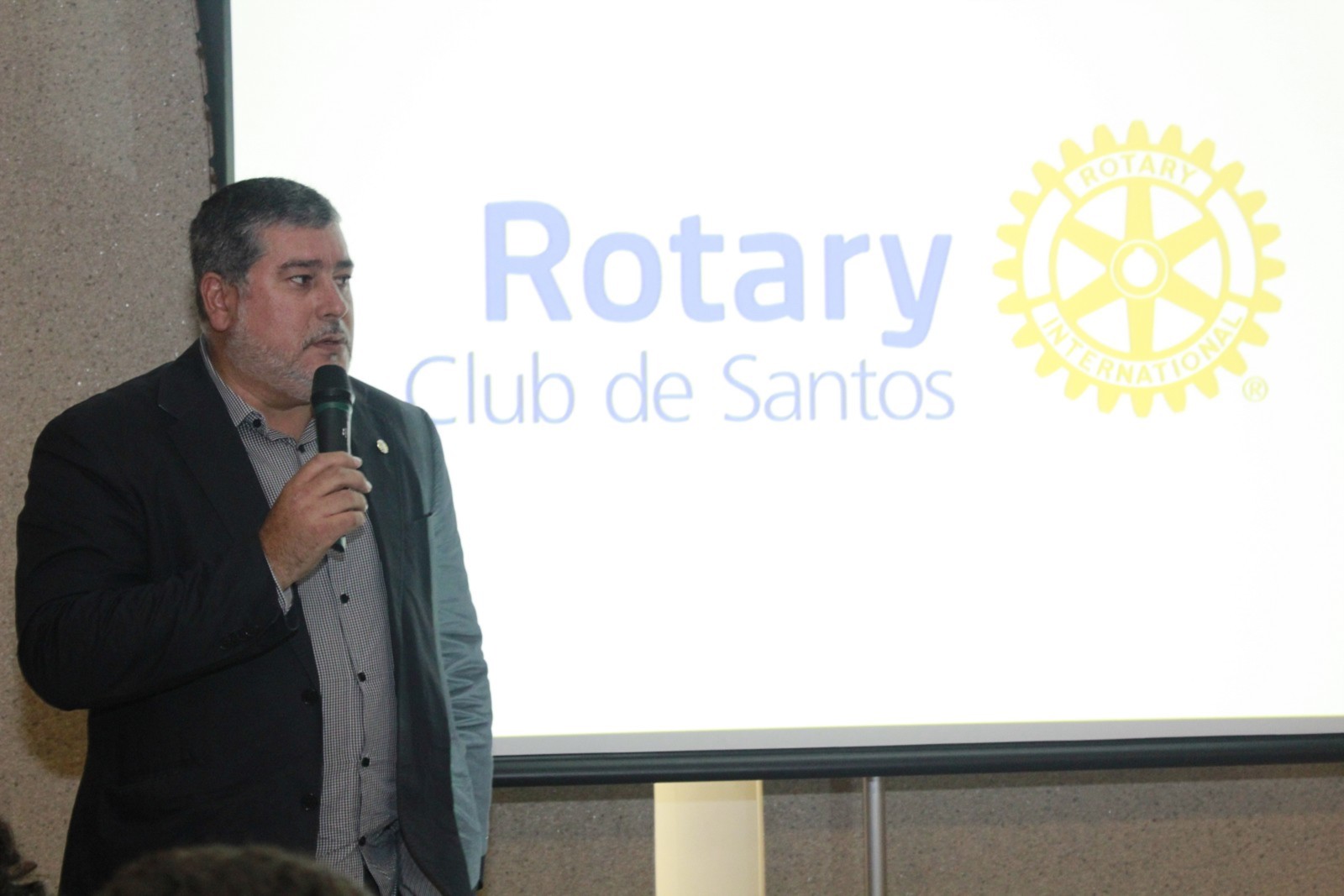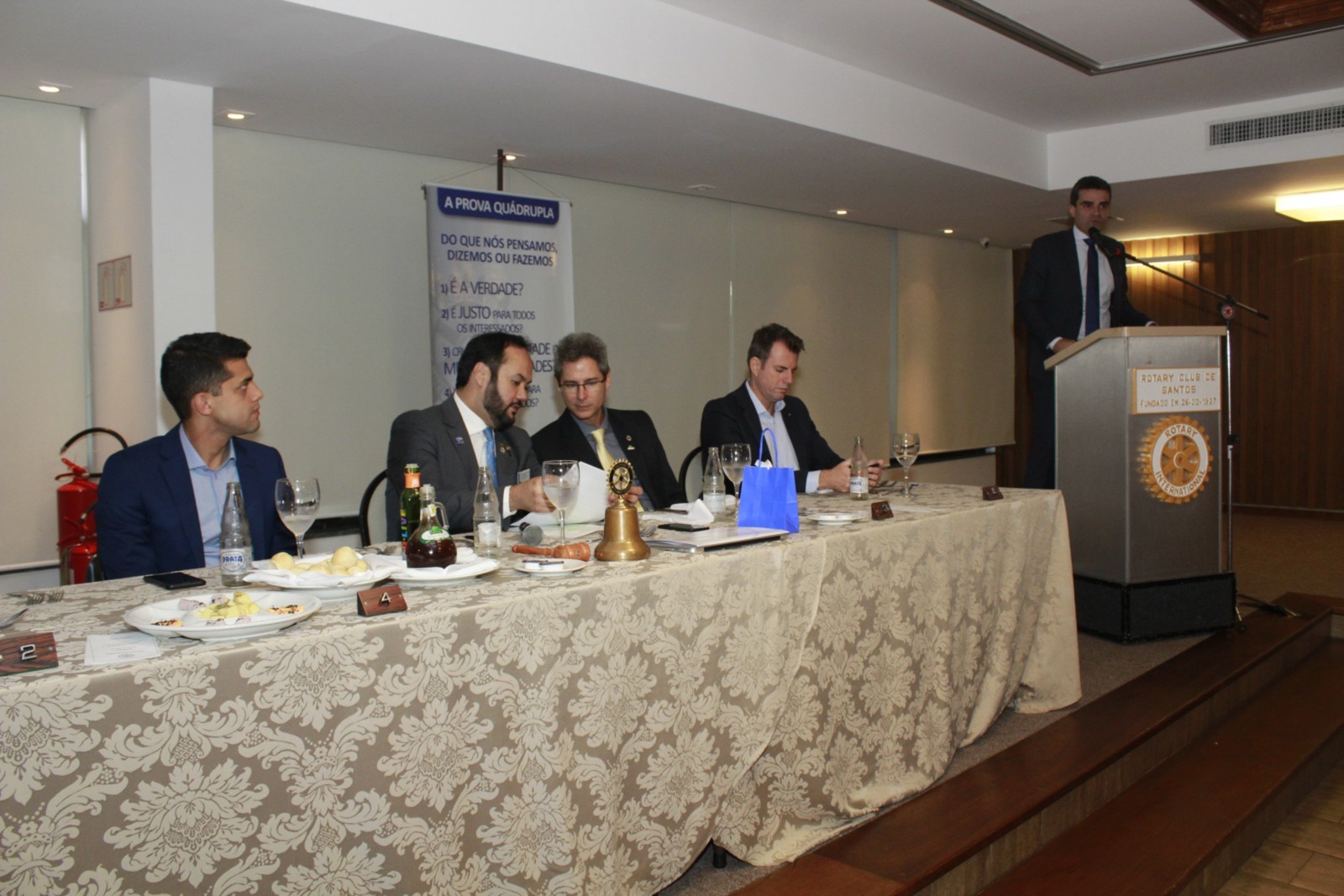 Após a apresentação, foi dado inicio a palestra da reunião, que teve como tema: Prestação de contas do Mandato e Realizações em Santos, em qual o Deputado Estadual Caio França foi palestrante. Cerca de 80 pessoas estiveram presentes entre Companheiros (as), cônjuges, convidados, Intercambistas e Rotaractianos.