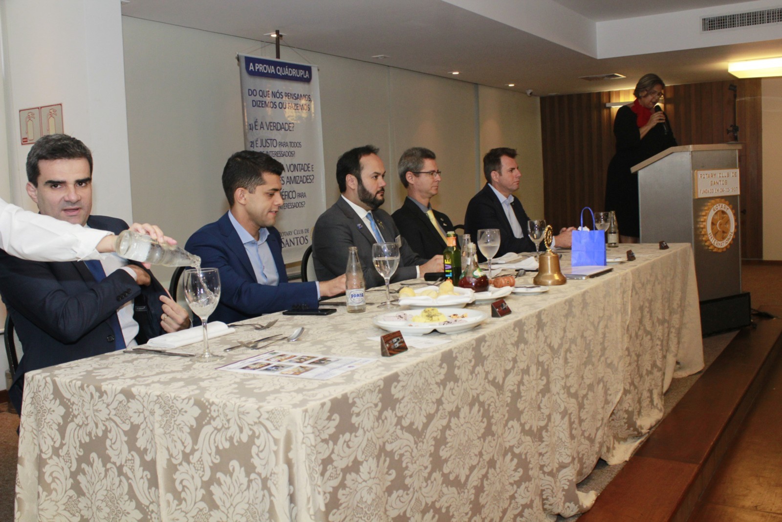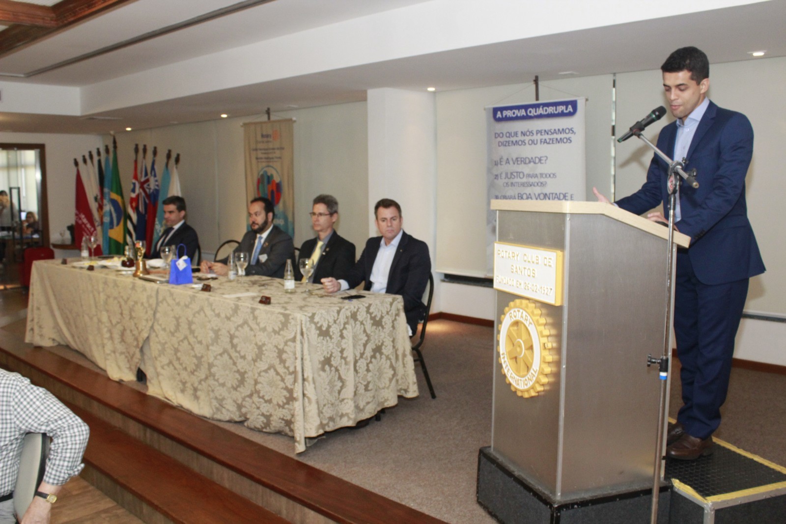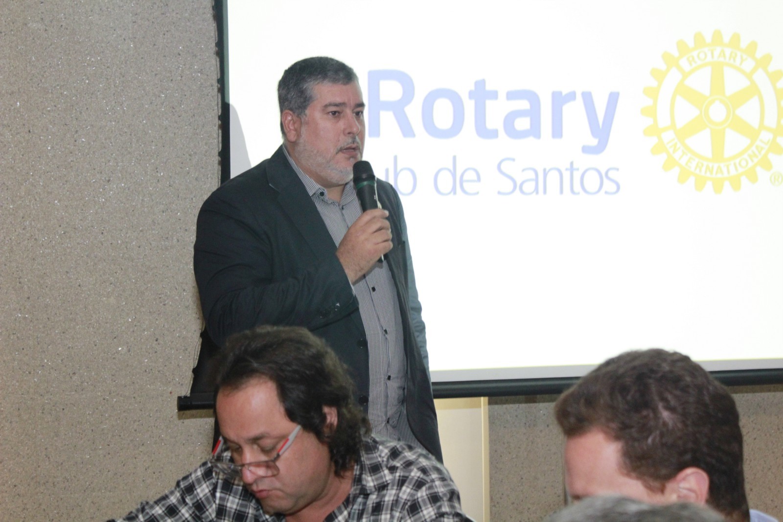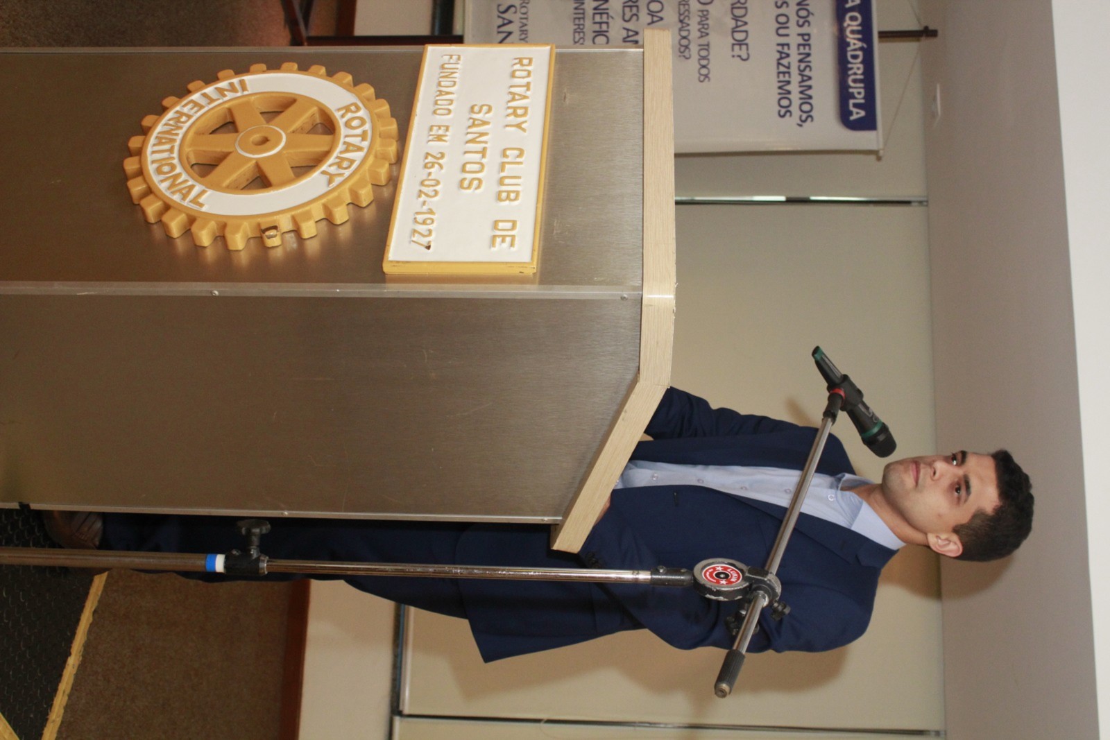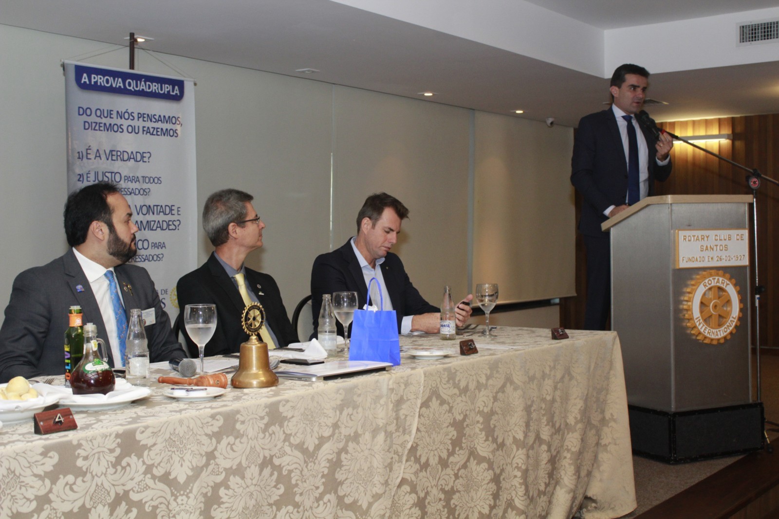 Após a apresentação, foi dado inicio a palestra da reunião, que teve como tema: Prestação de contas do Mandato e Realizações em Santos, em qual o Deputado Estadual Caio França foi palestrante. Cerca de 80 pessoas estiveram presentes entre Companheiros (as), cônjuges, convidados, Intercambistas e Rotaractianos.
