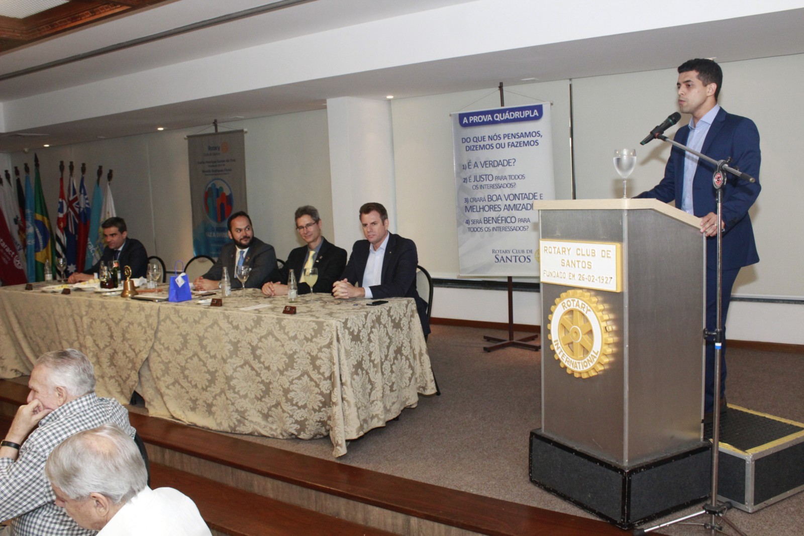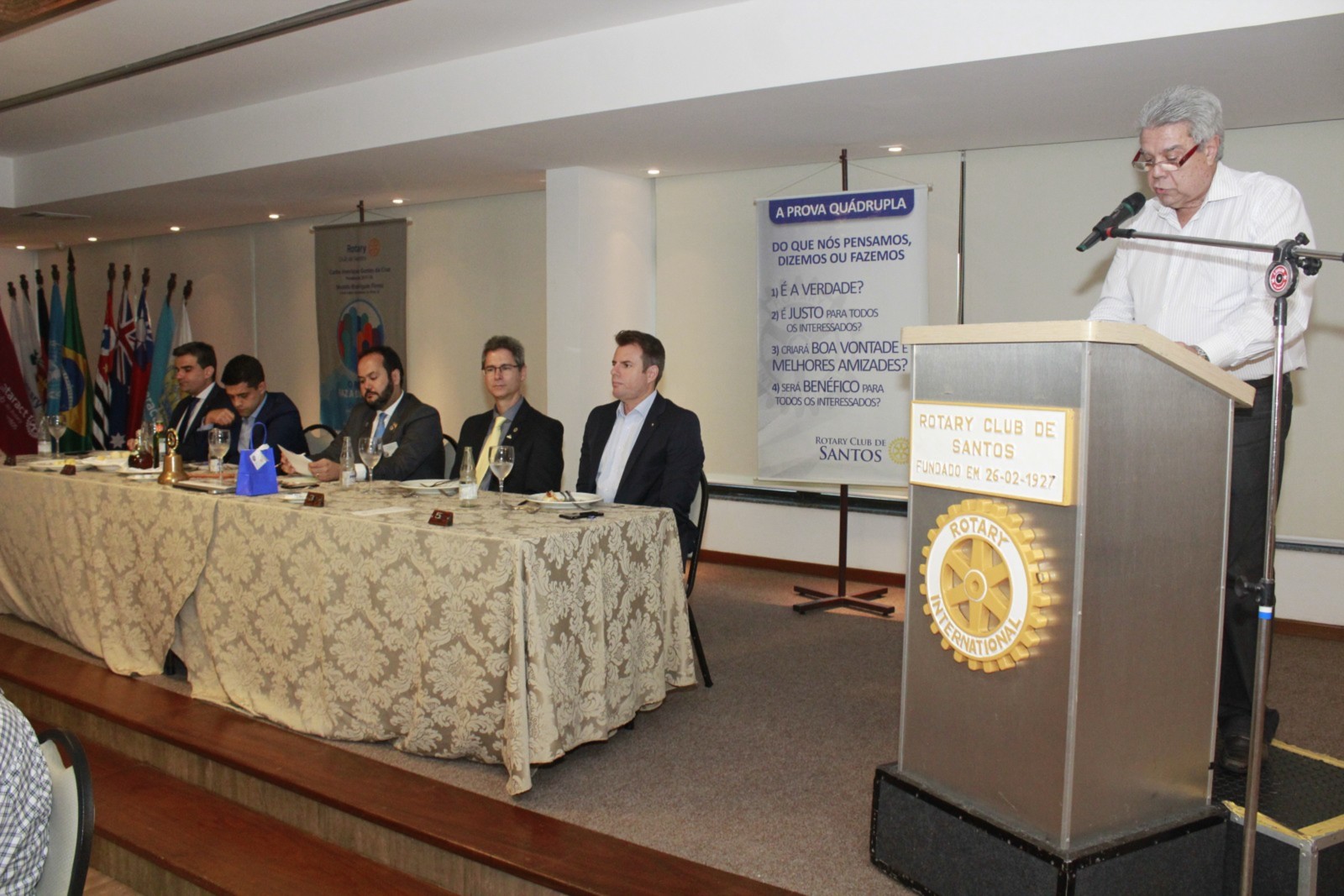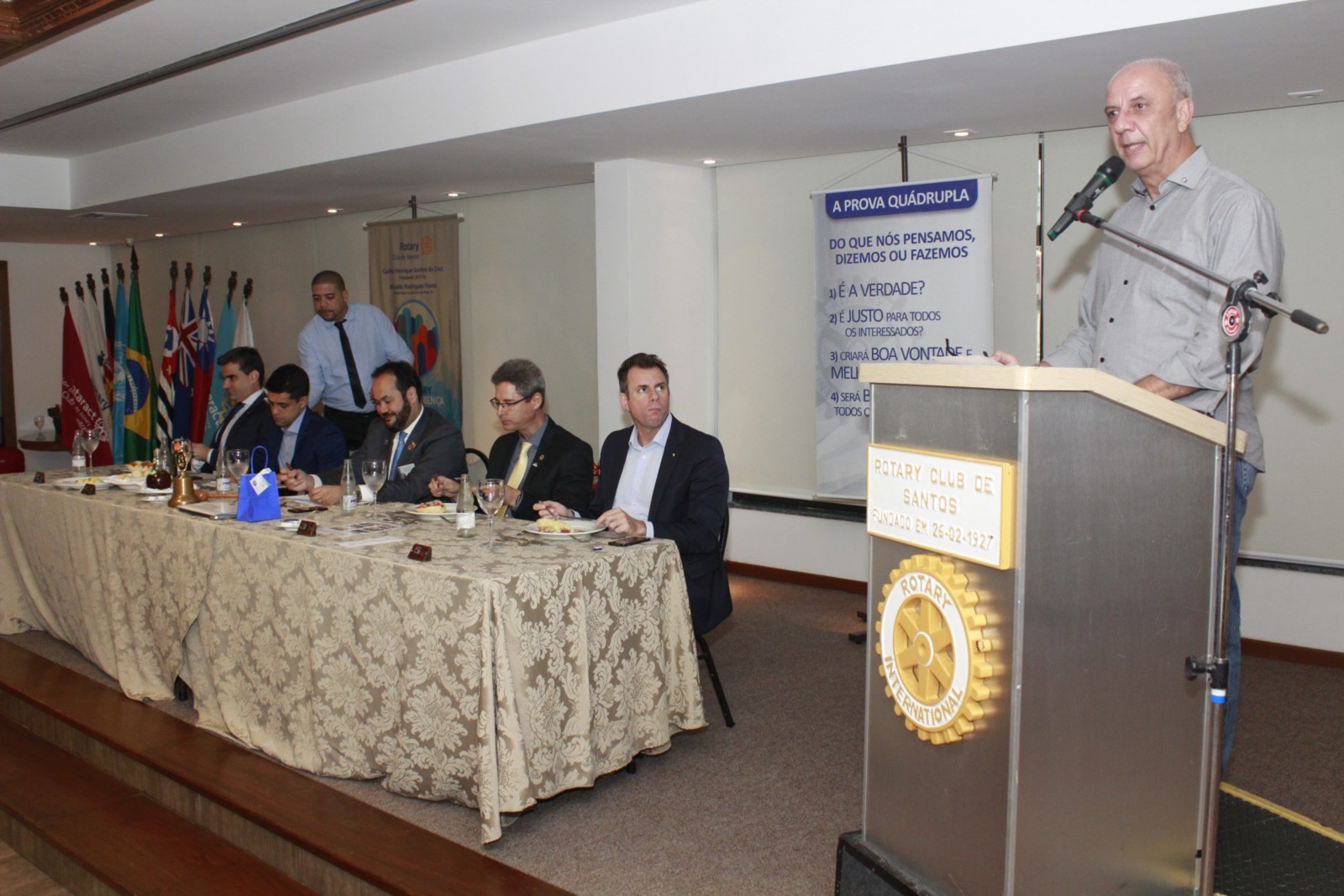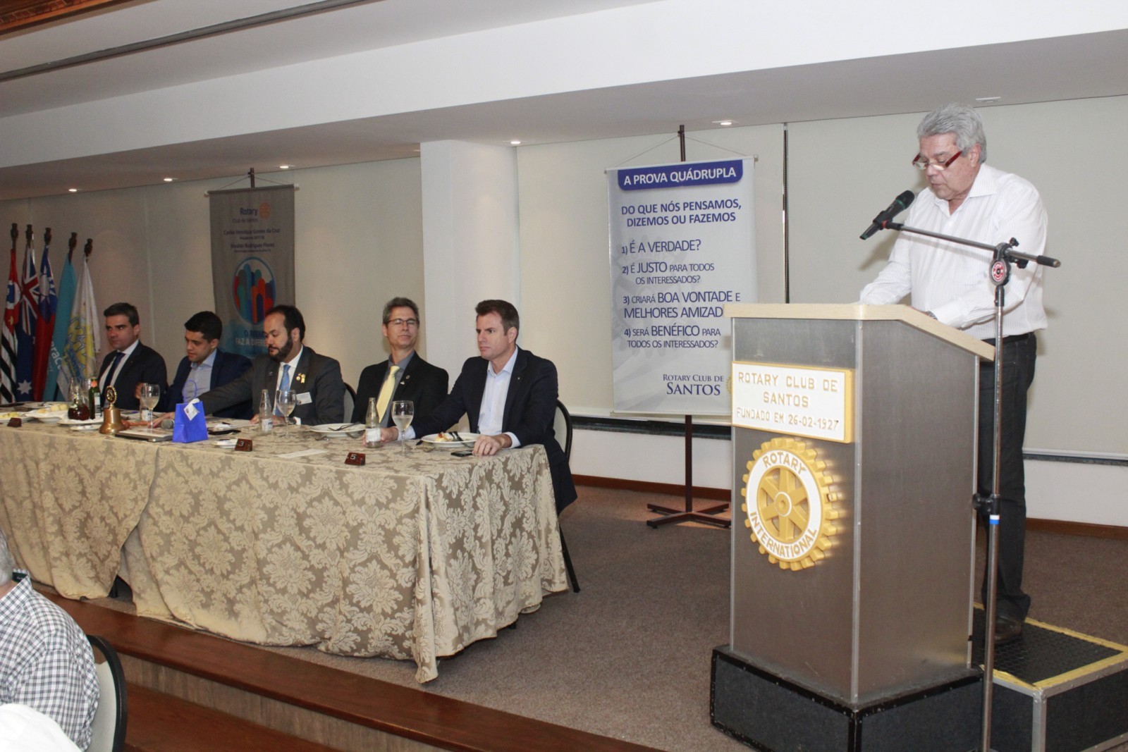 Após a apresentação, foi dado inicio a palestra da reunião, que teve como tema: Prestação de contas do Mandato e Realizações em Santos, em qual o Deputado Estadual Caio França foi palestrante. Cerca de 80 pessoas estiveram presentes entre Companheiros (as), cônjuges, convidados, Intercambistas e Rotaractianos.
