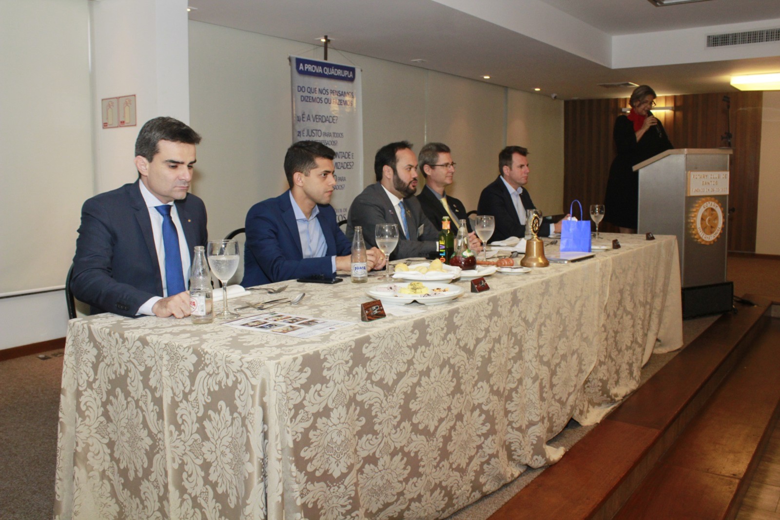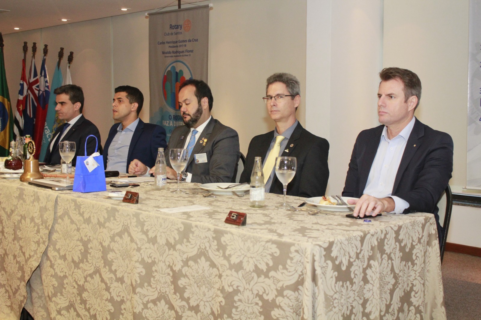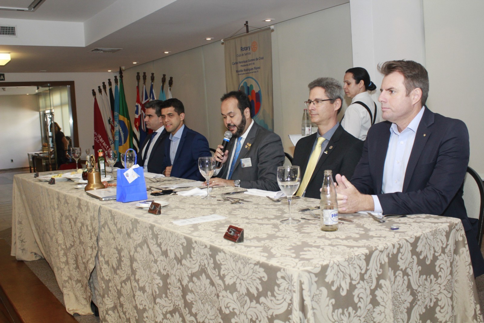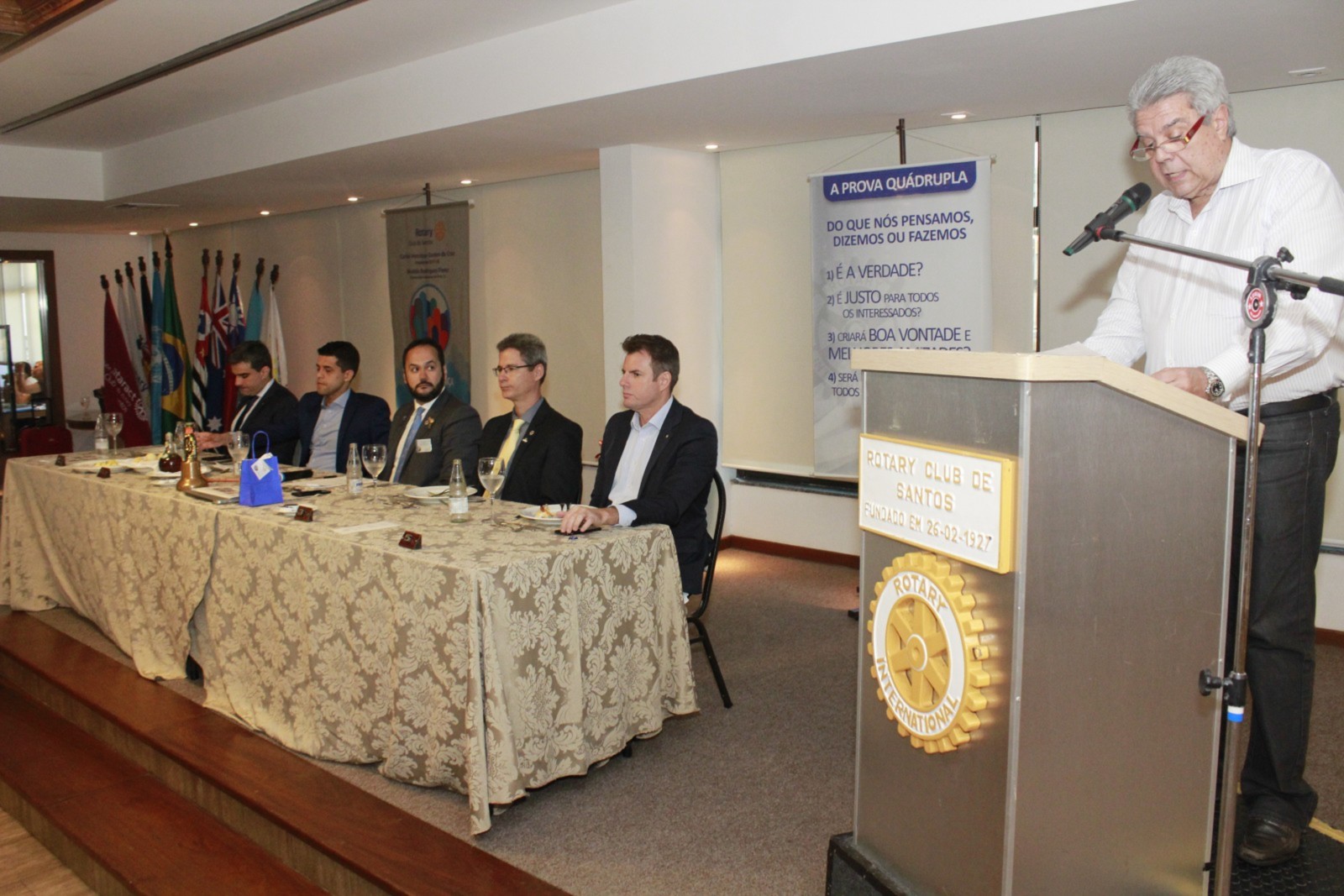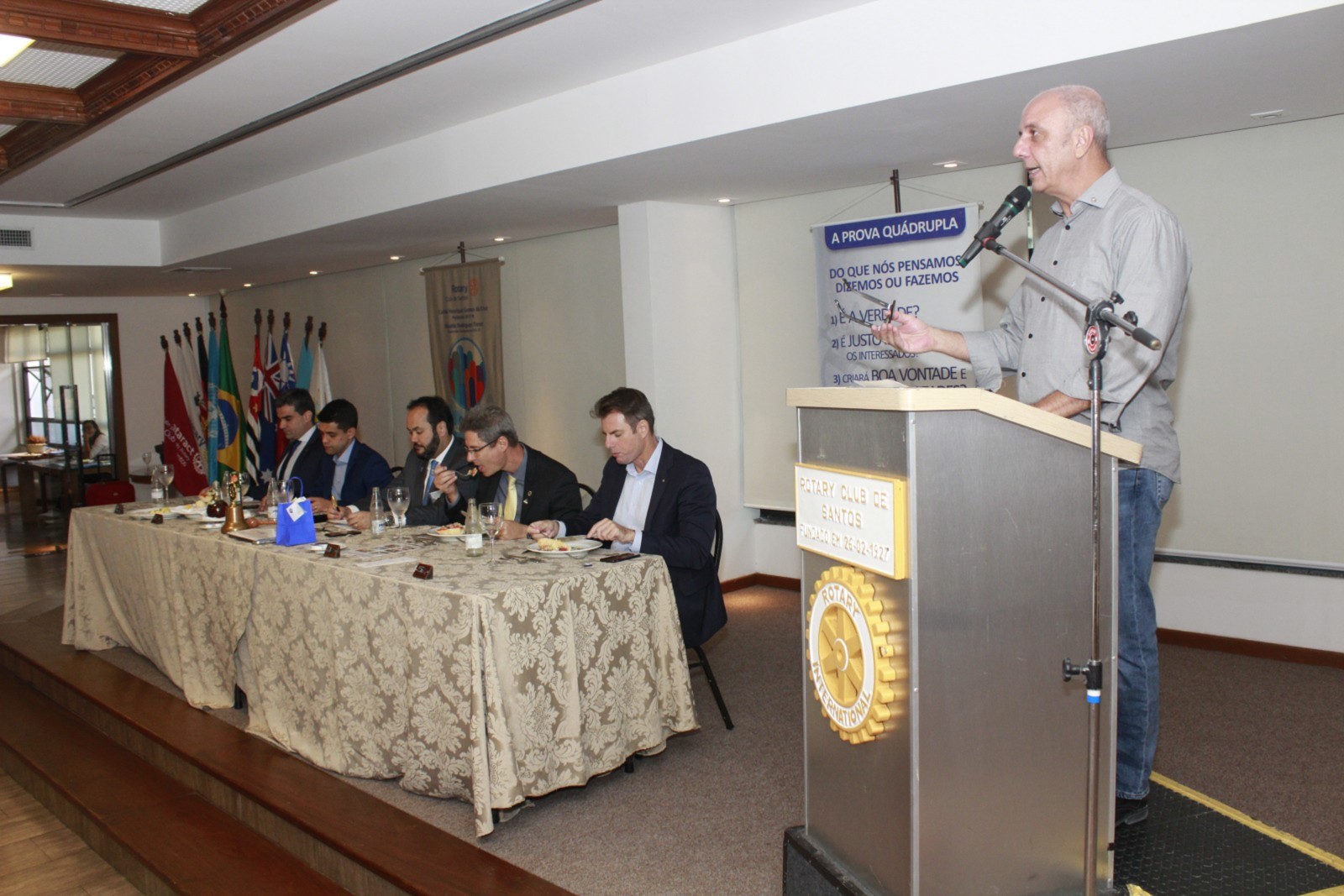 Após a apresentação, foi dado inicio a palestra da reunião, que teve como tema: Prestação de contas do Mandato e Realizações em Santos, em qual o Deputado Estadual Caio França foi palestrante. Cerca de 80 pessoas estiveram presentes entre Companheiros (as), cônjuges, convidados, Intercambistas e Rotaractianos.