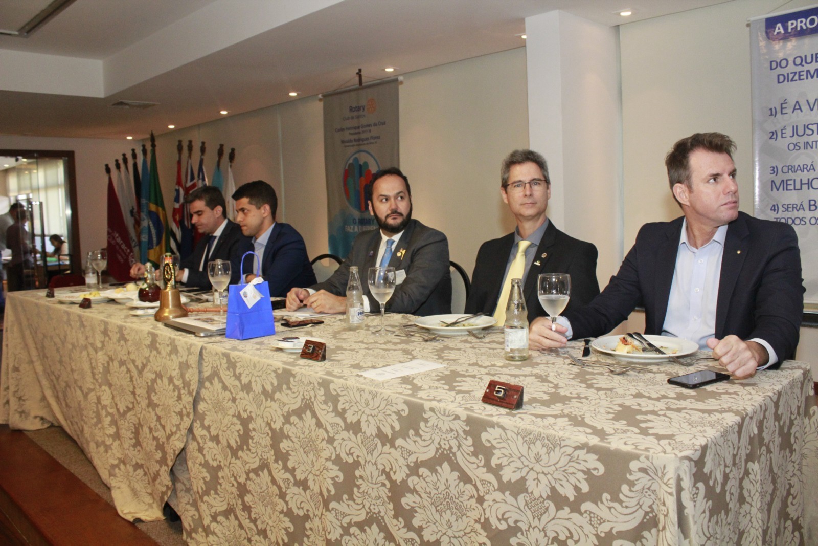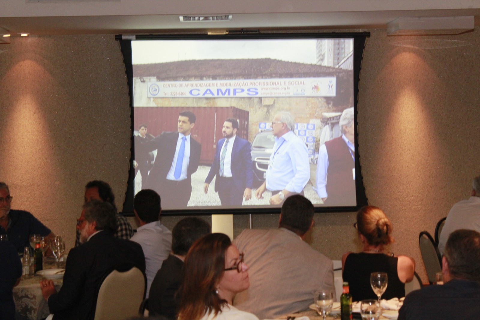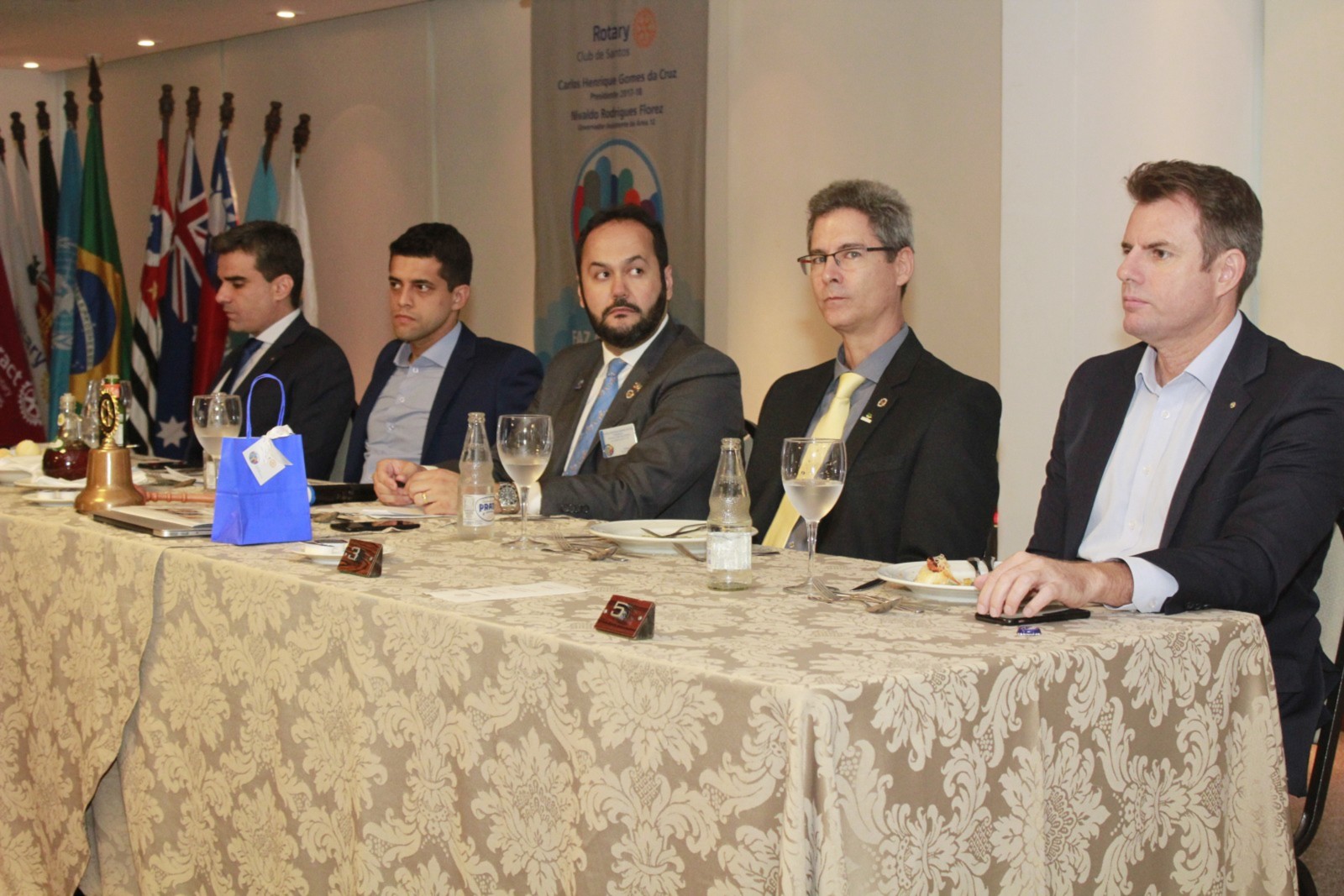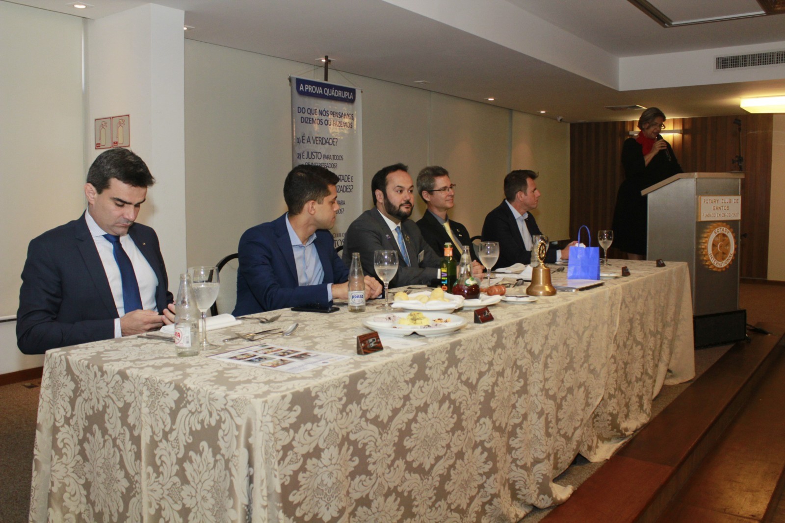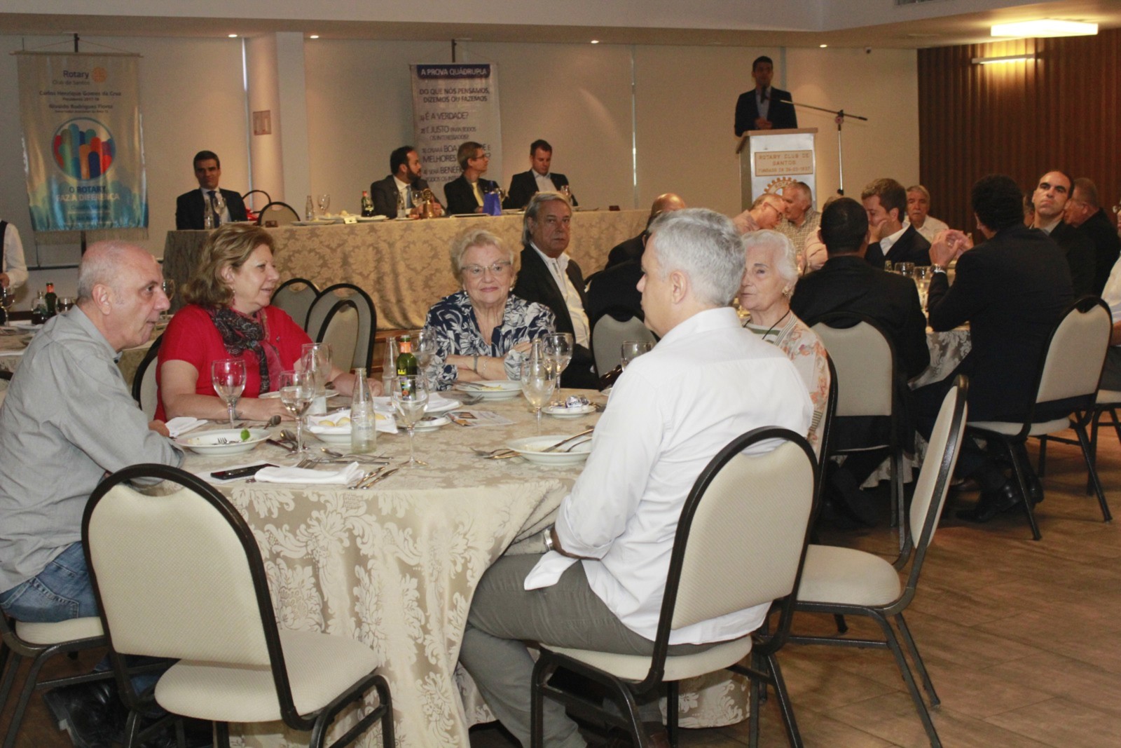 Após a apresentação, foi dado inicio a palestra da reunião, que teve como tema: Prestação de contas do Mandato e Realizações em Santos, em qual o Deputado Estadual Caio França foi palestrante. Cerca de 80 pessoas estiveram presentes entre Companheiros (as), cônjuges, convidados, Intercambistas e Rotaractianos.