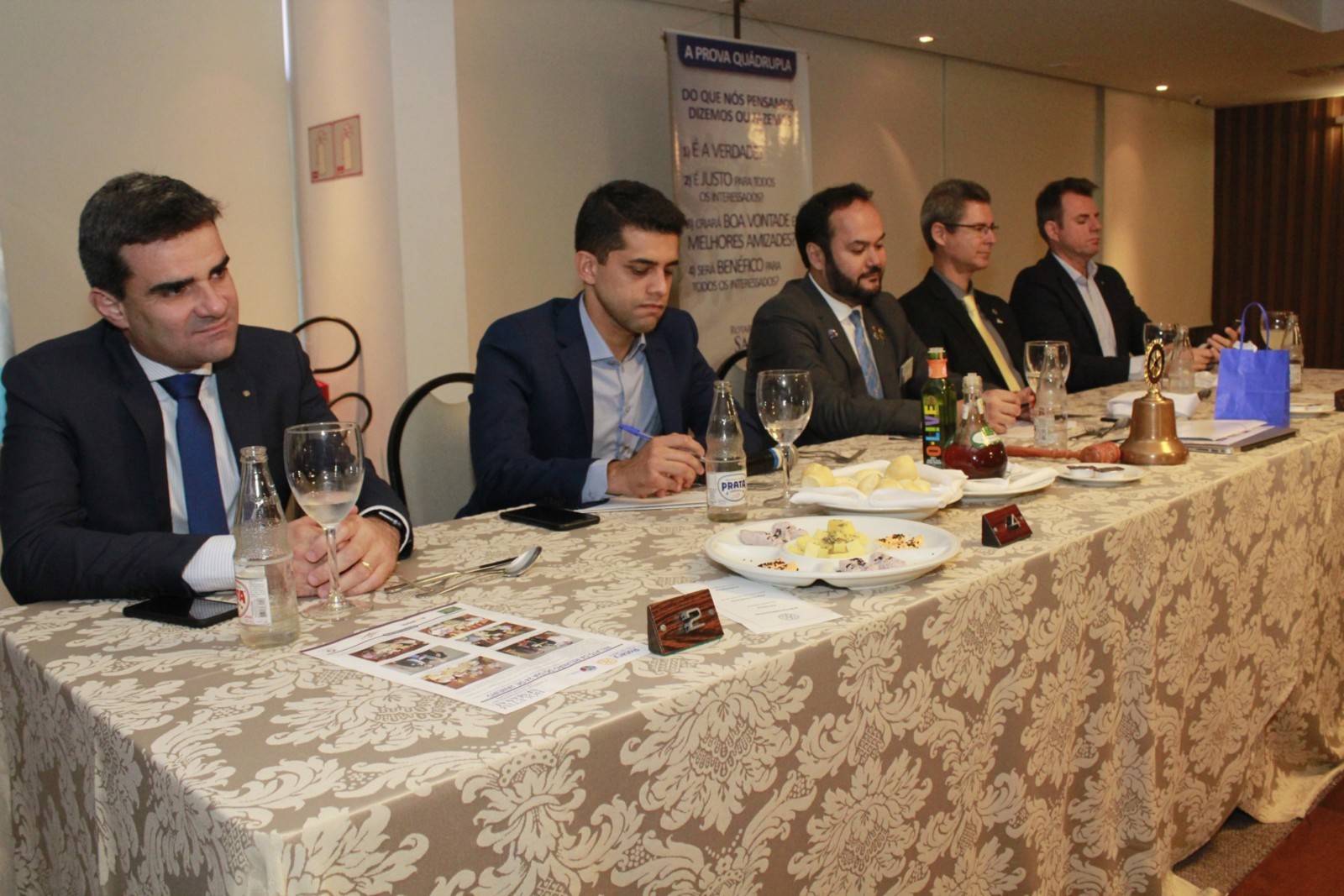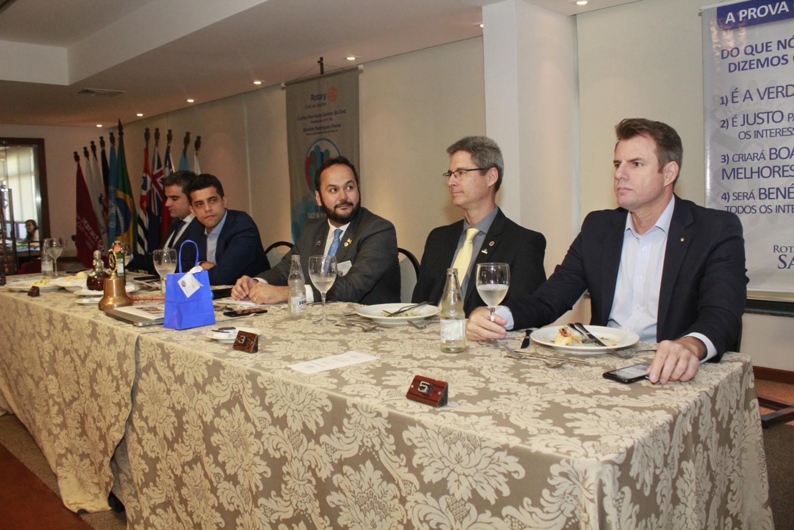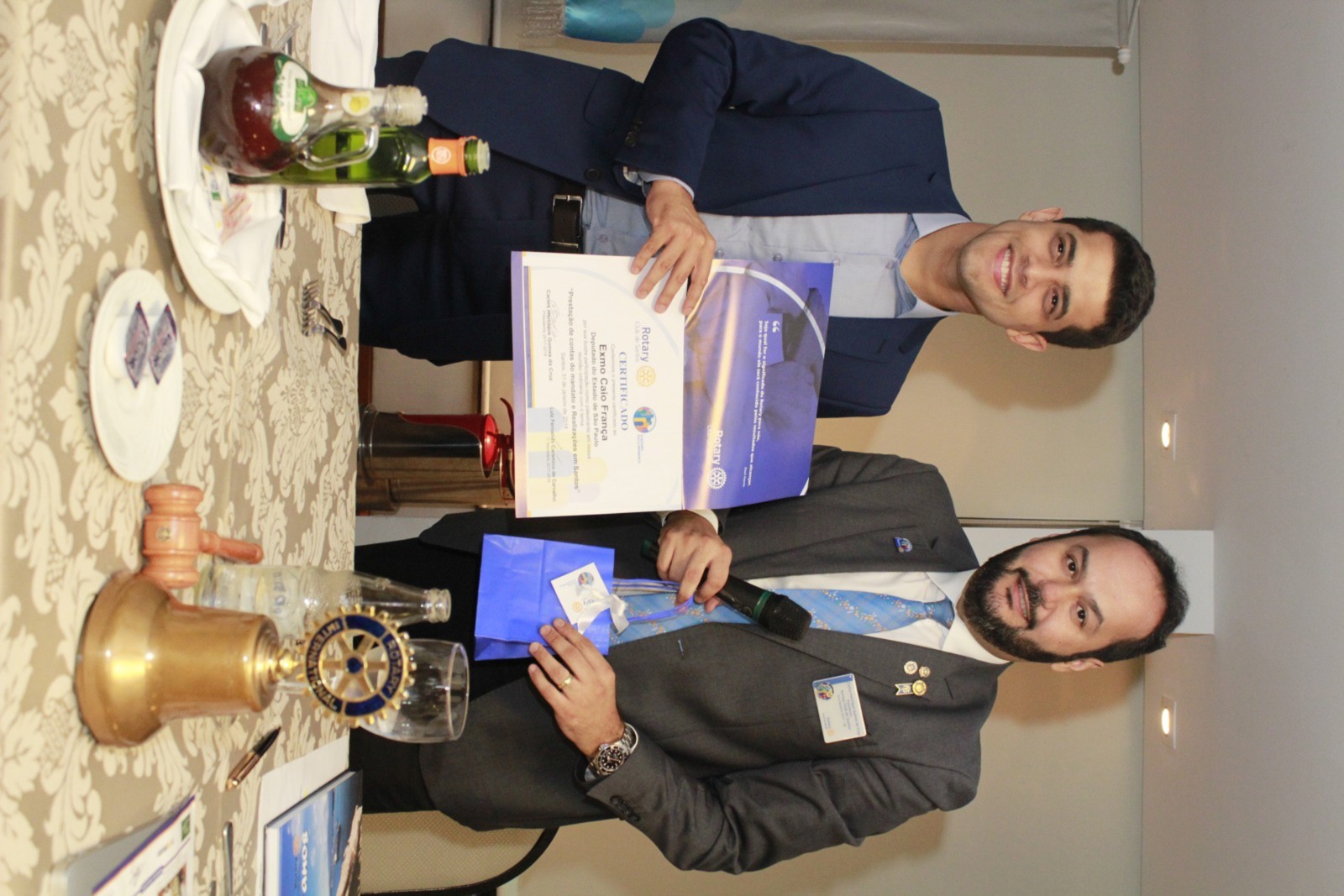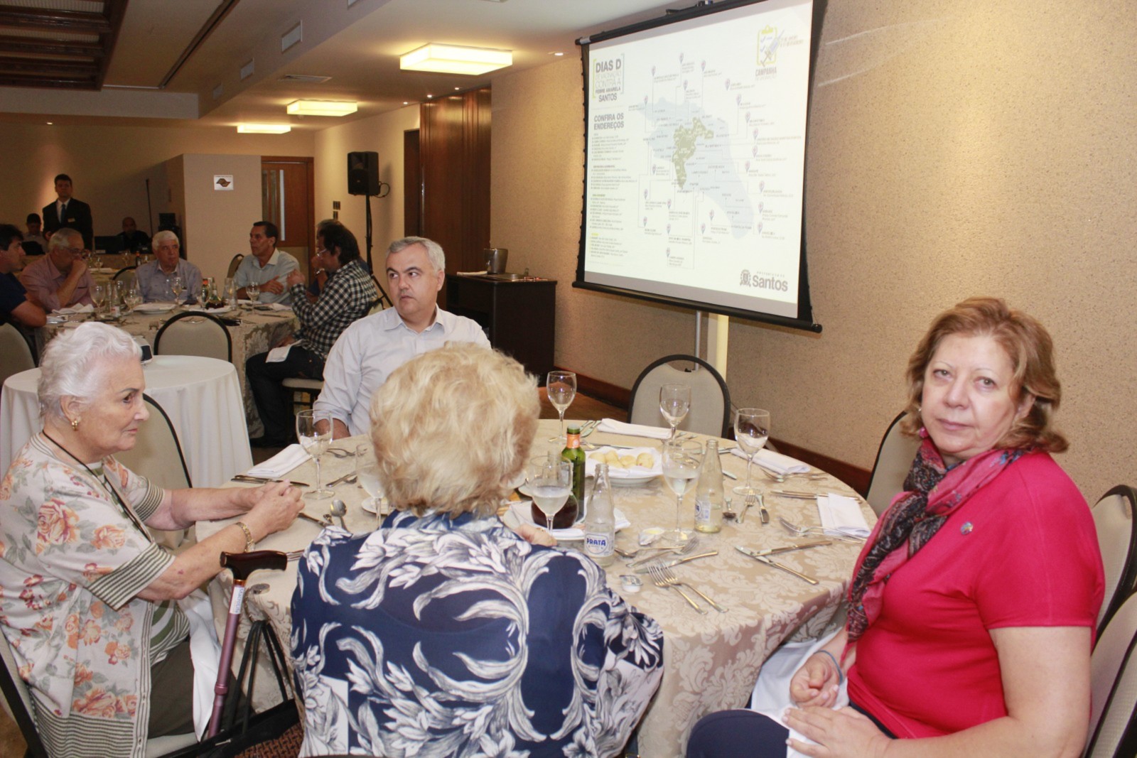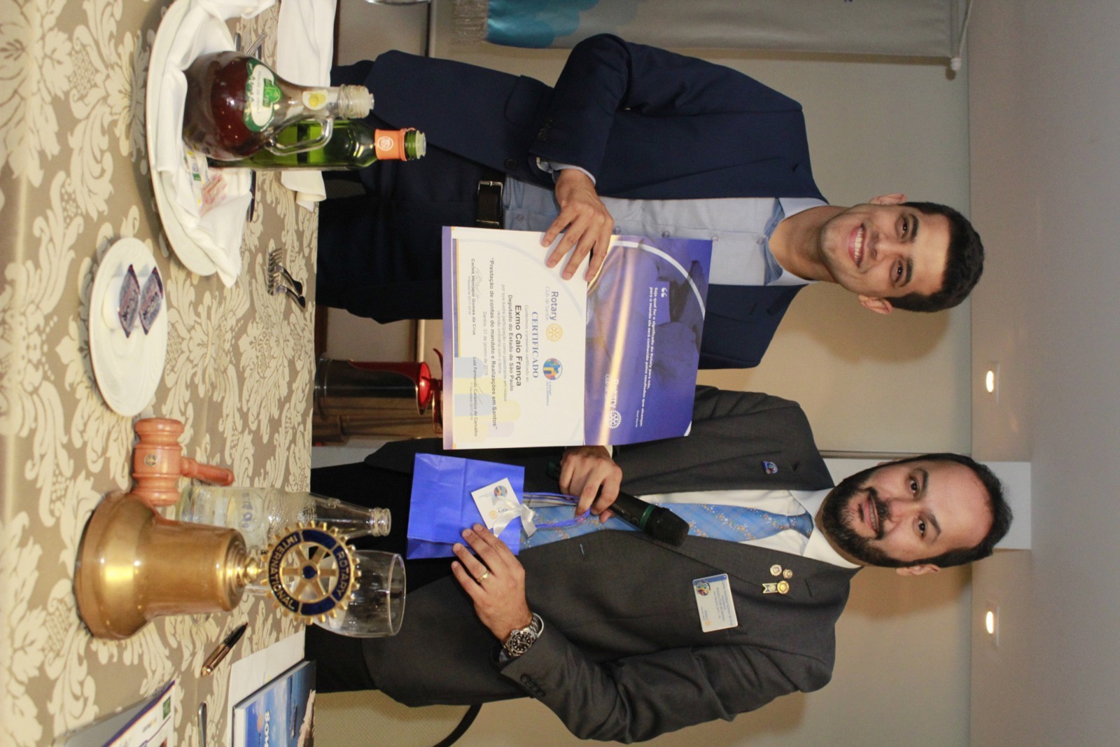 Após a apresentação, foi dado inicio a palestra da reunião, que teve como tema: Prestação de contas do Mandato e Realizações em Santos, em qual o Deputado Estadual Caio França foi palestrante. Cerca de 80 pessoas estiveram presentes entre Companheiros (as), cônjuges, convidados, Intercambistas e Rotaractianos.
