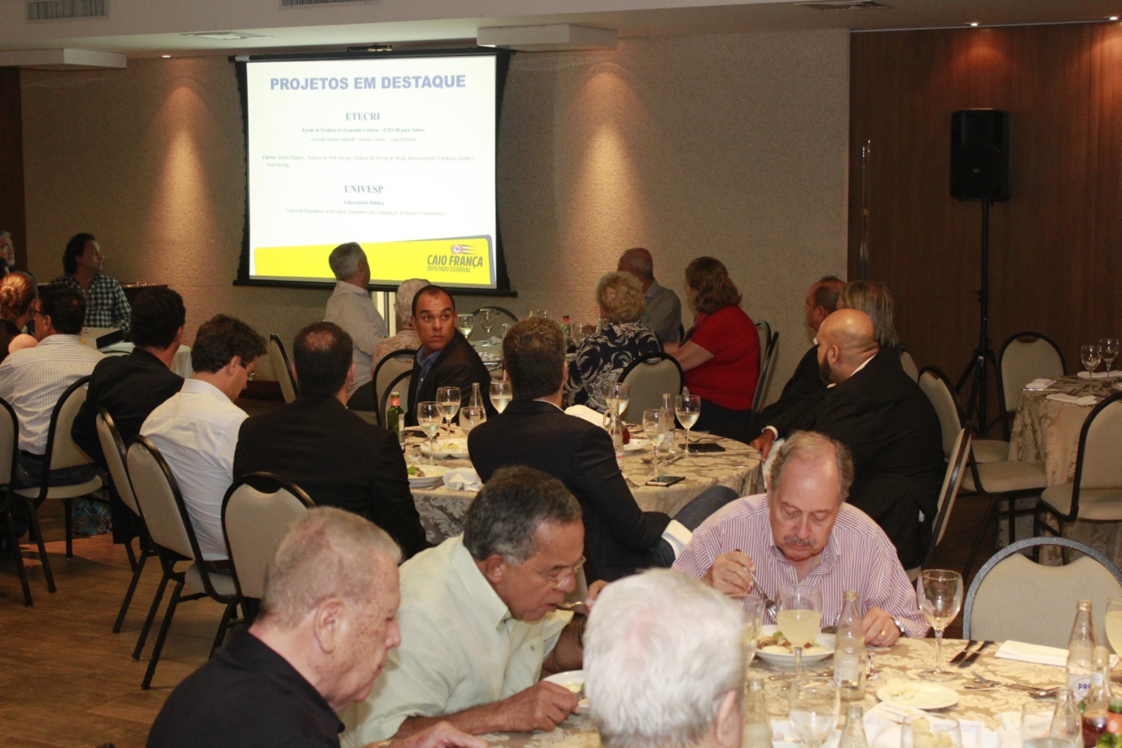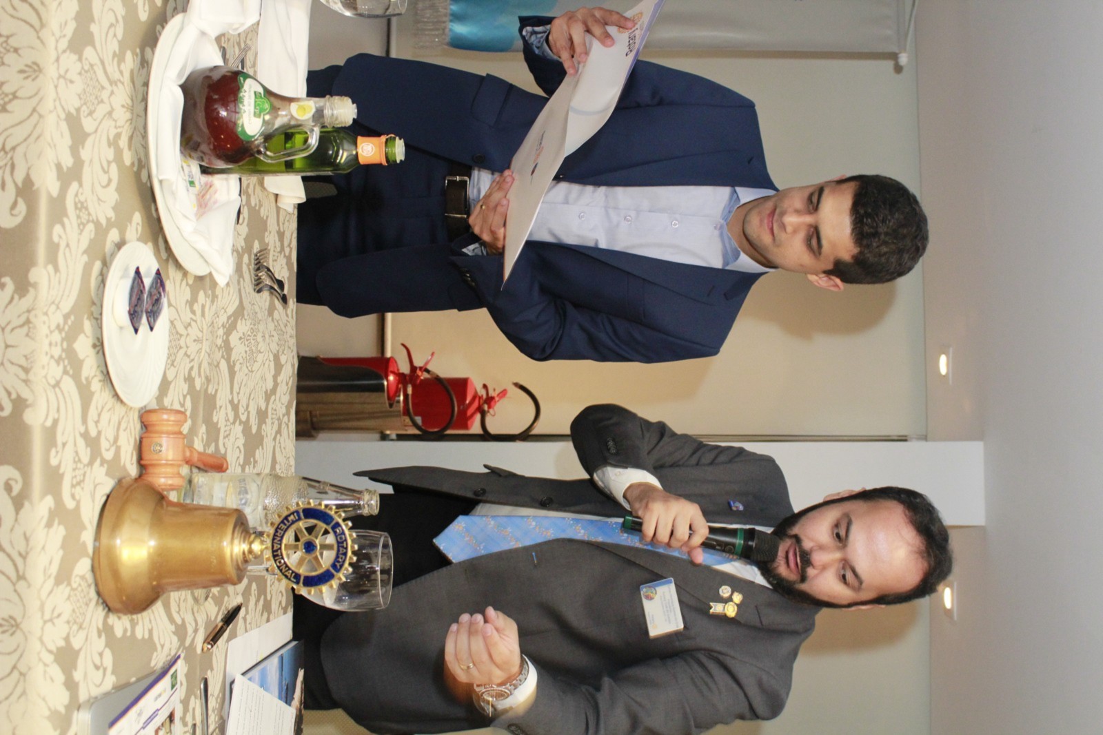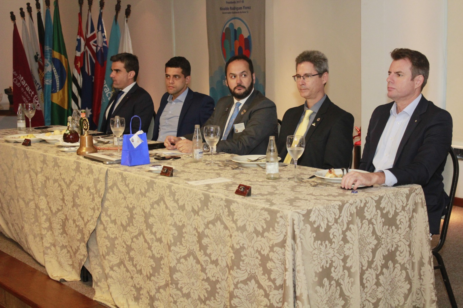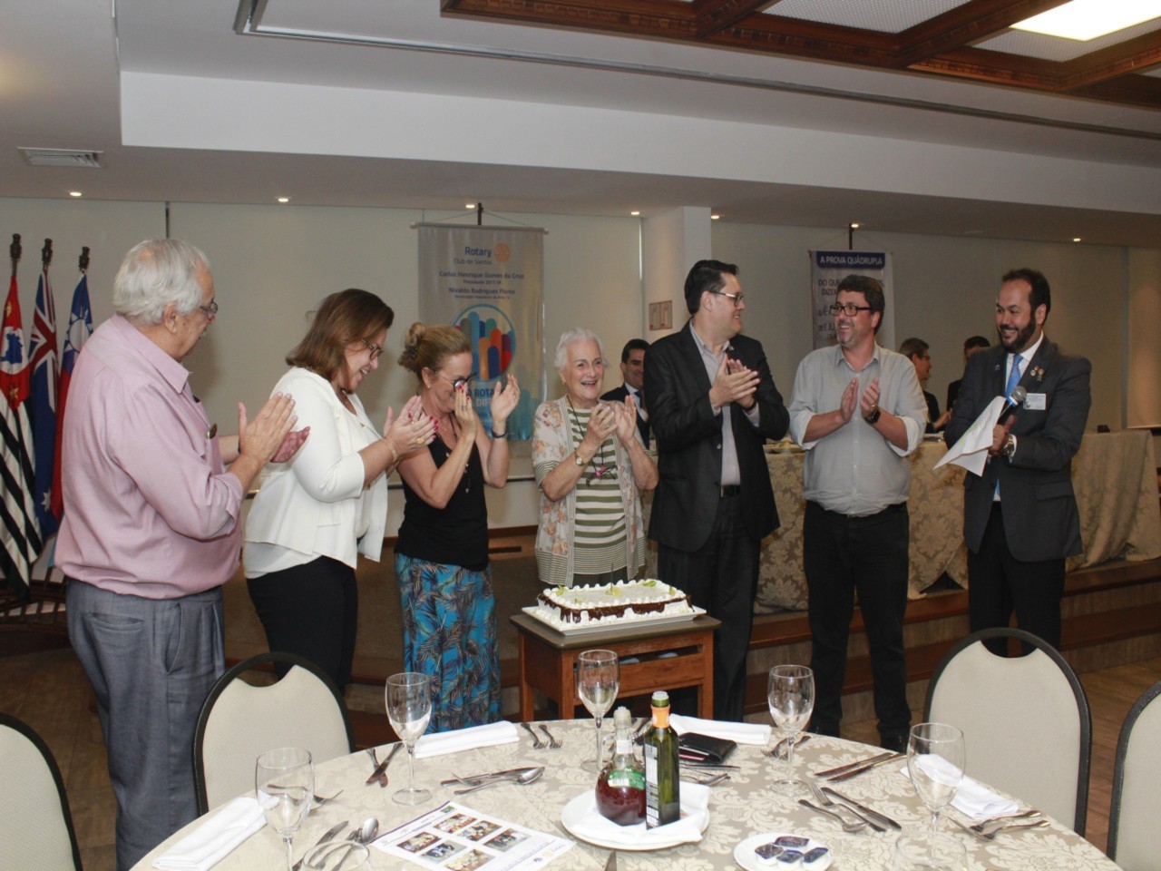 Após a apresentação, foi dado inicio a palestra da reunião, que teve como tema: Prestação de contas do Mandato e Realizações em Santos, em qual o Deputado Estadual Caio França foi palestrante. Cerca de 80 pessoas estiveram presentes entre Companheiros (as), cônjuges, convidados, Intercambistas e Rotaractianos.
