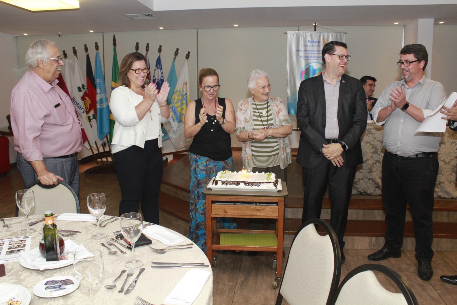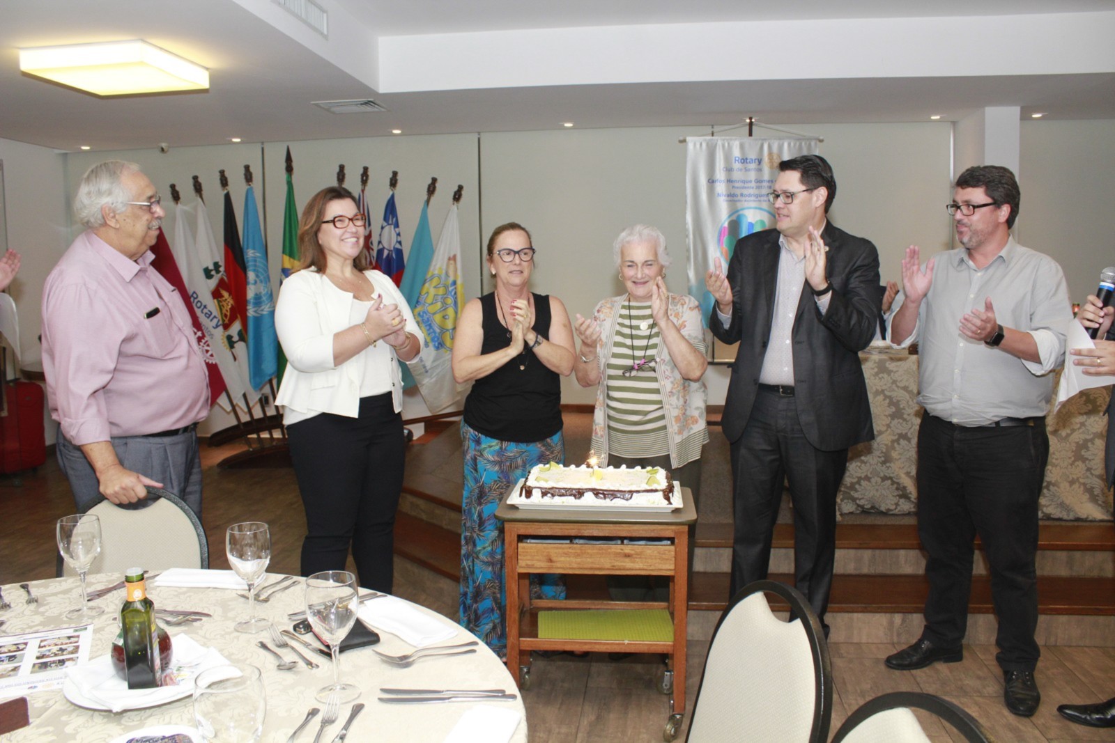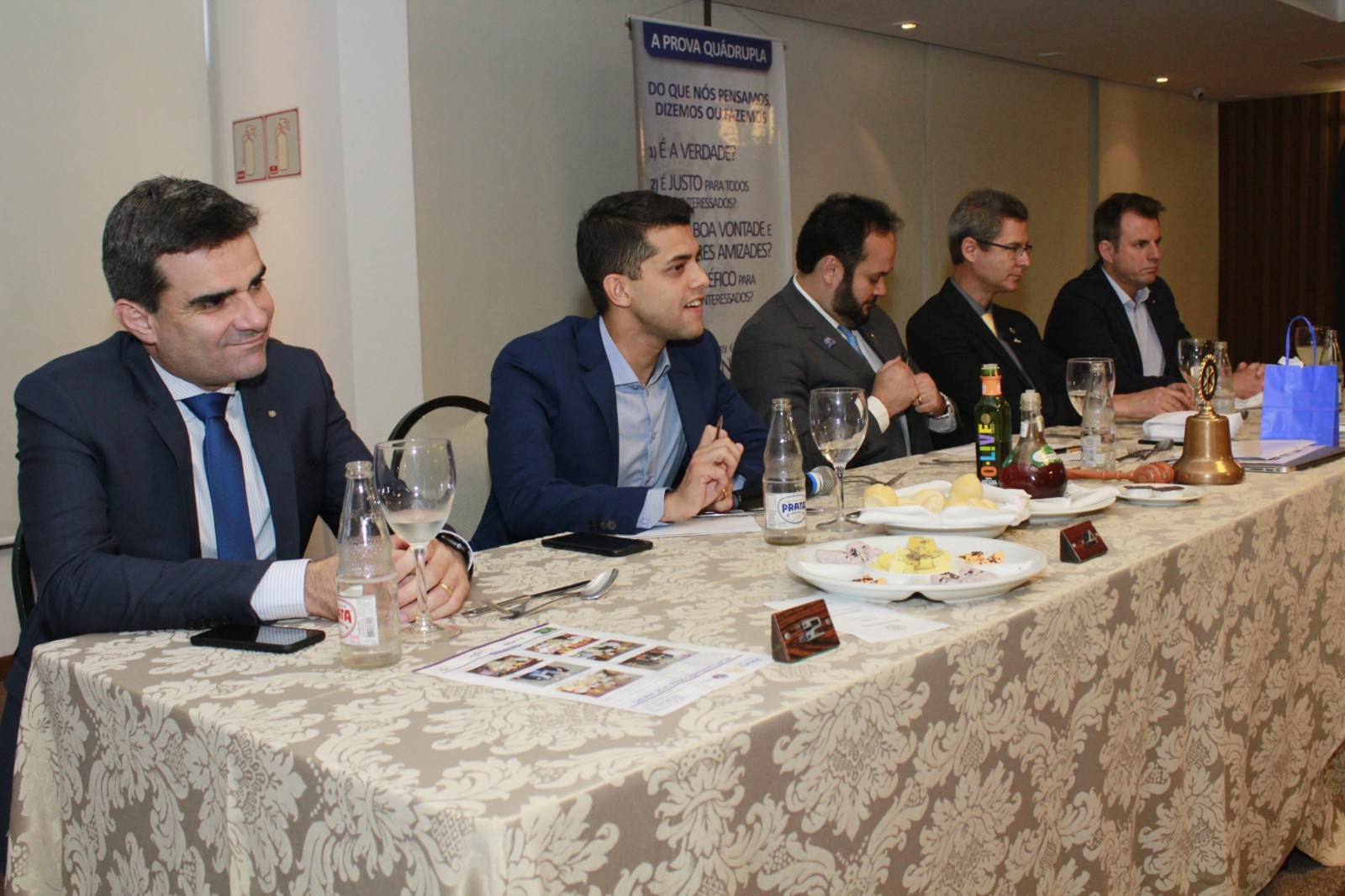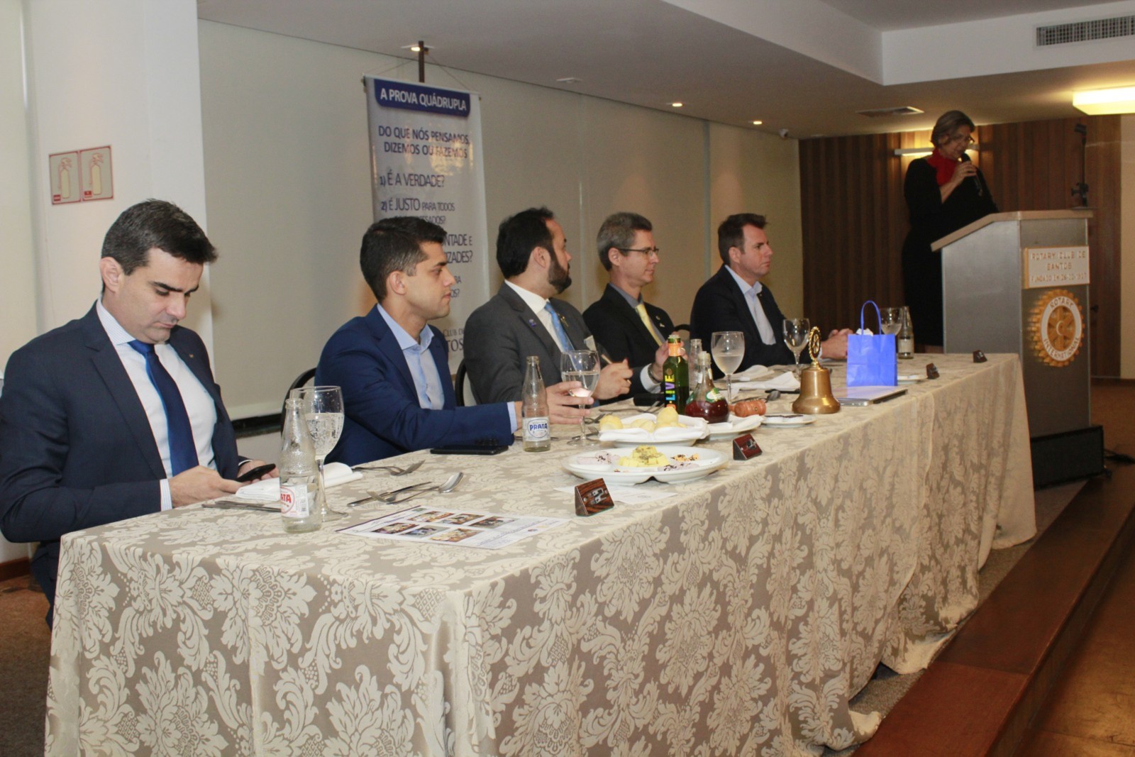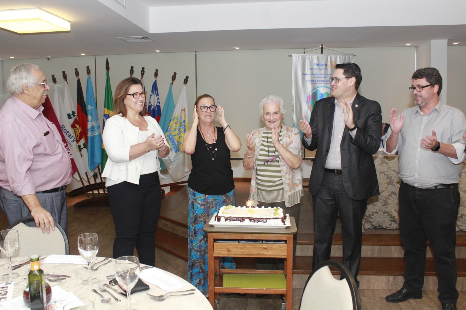 Após a apresentação, foi dado inicio a palestra da reunião, que teve como tema: Prestação de contas do Mandato e Realizações em Santos, em qual o Deputado Estadual Caio França foi palestrante. Cerca de 80 pessoas estiveram presentes entre Companheiros (as), cônjuges, convidados, Intercambistas e Rotaractianos.