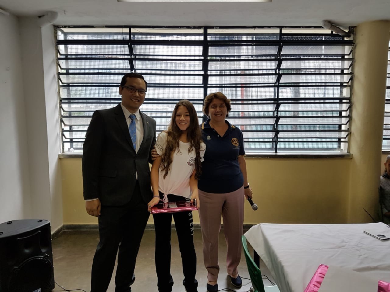 Entrega dos prêmios do programa Rotary nas escolas na E.E Aristides de Castro em São Paulo. Tema da redação: Sustentabilidade.