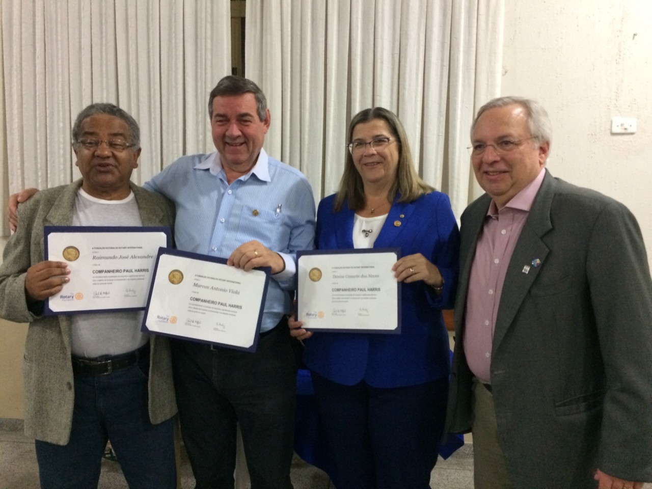 O título Paul Harris, em reconhecimento à destacada atuação rotária, foi conferido neste ano aos companheiros Denise Neves, Marcos Viola e Raimundo Alexandre.
