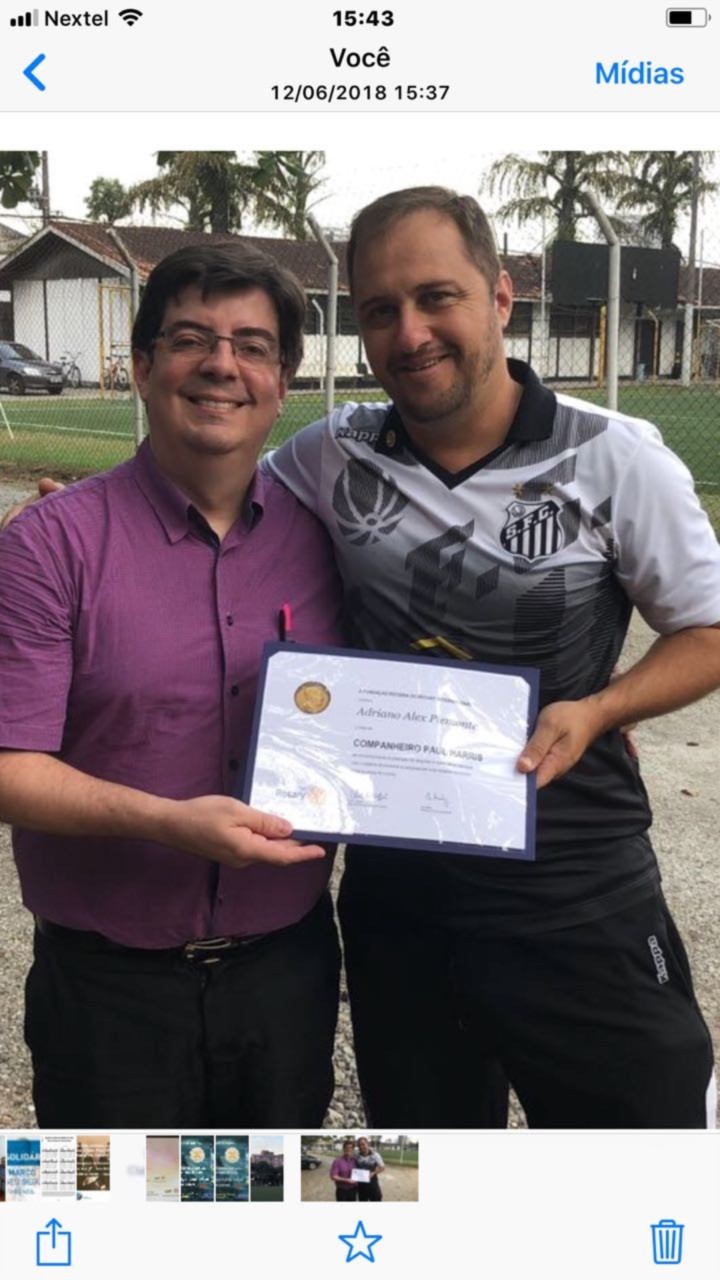 O companheiro Adriano Piemonte recebe seu primeiro Paul Harris, no dia 12 de junho de 2018. Companheiro trabalhador é dedicado à prática do bem-comum. Assim, o Rotary club de Santos Gonzaga chega a marca de dez Paul Harris Society entregues nesse ano rotário.