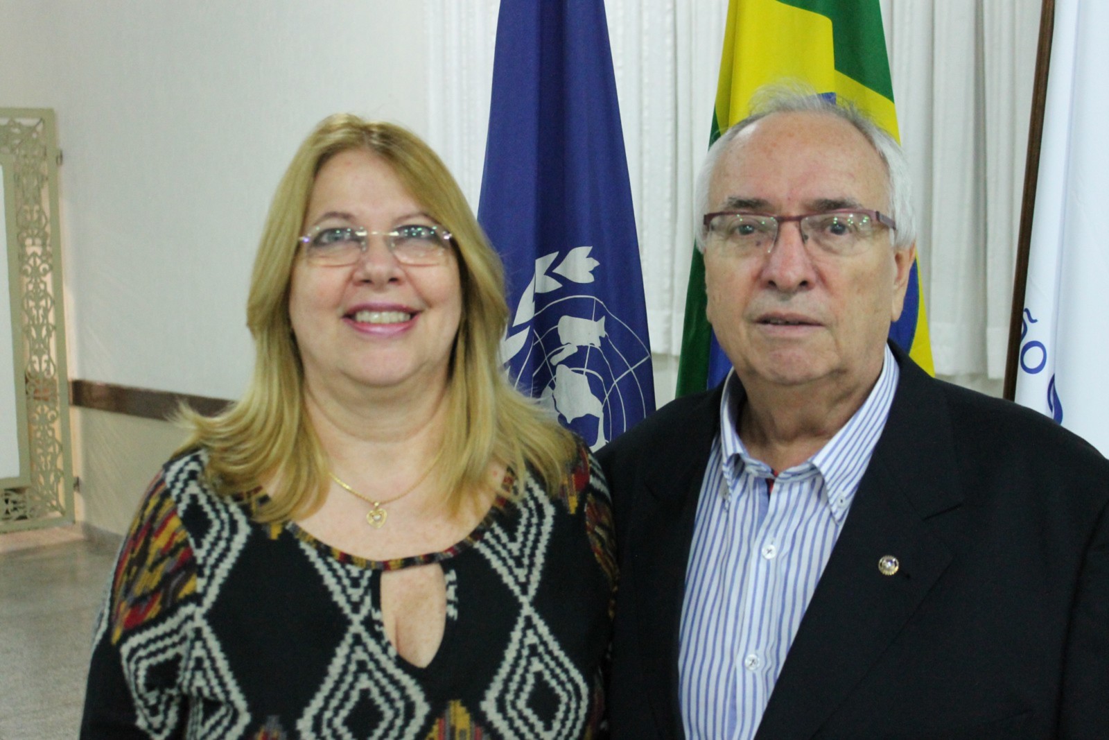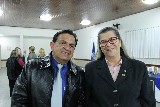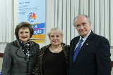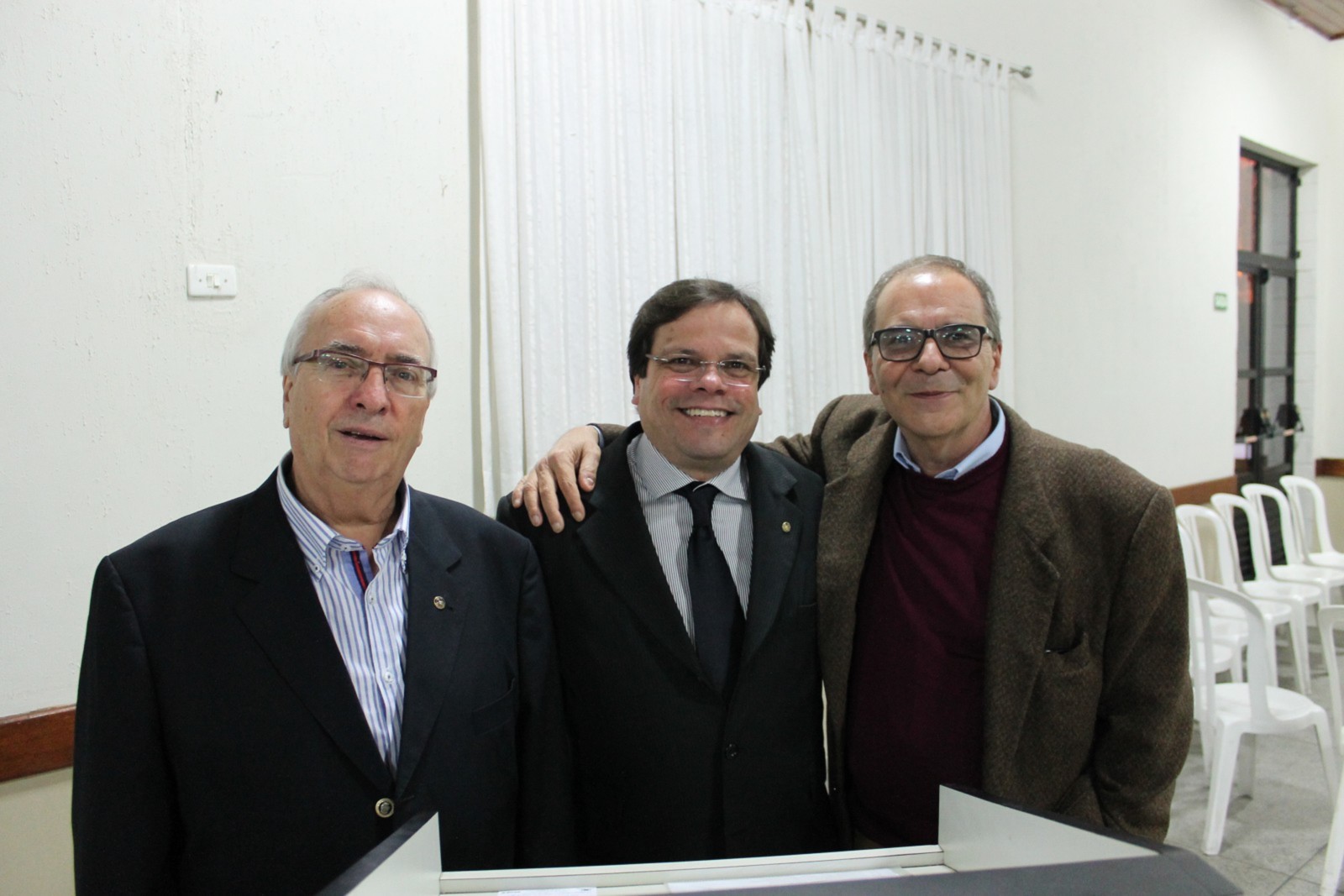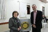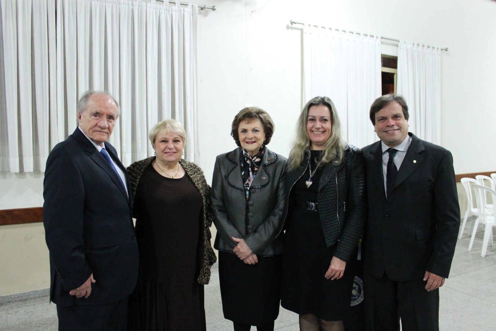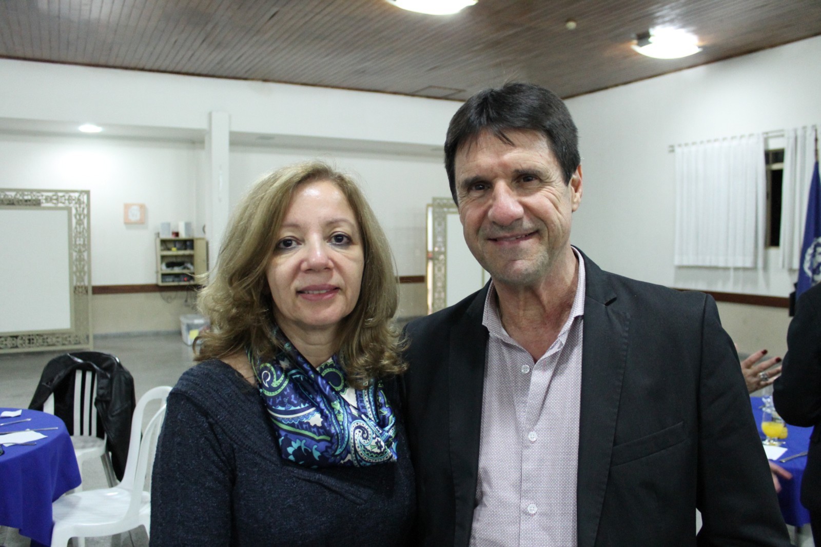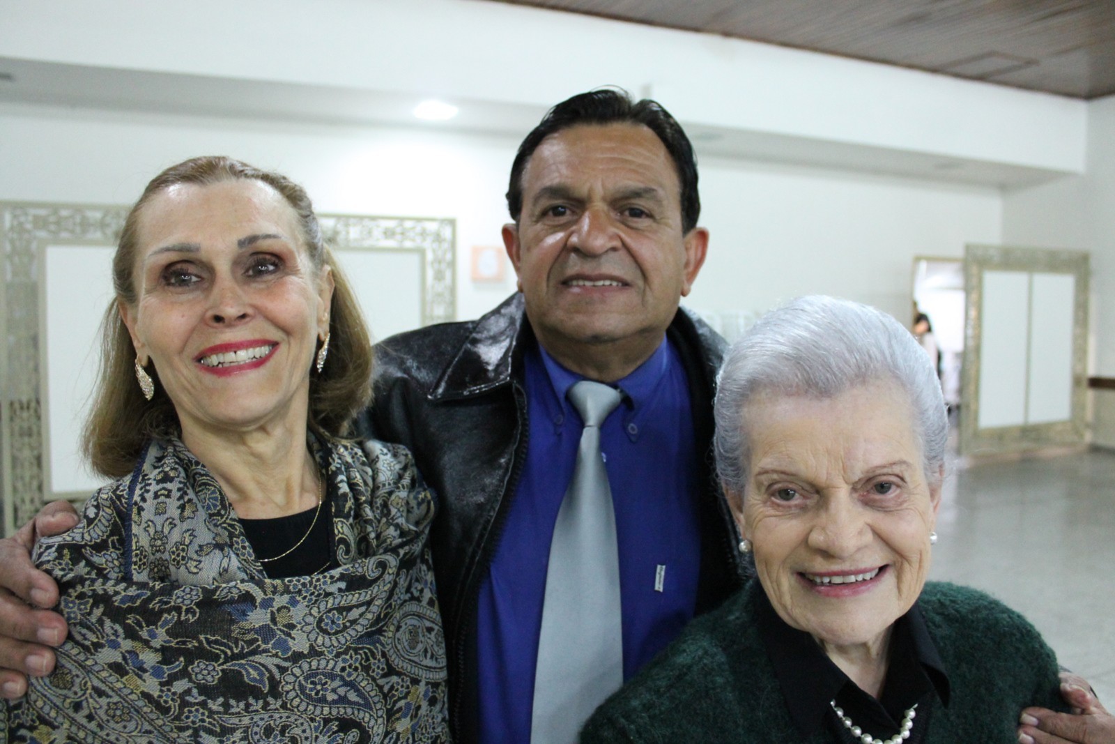 Na foto (da esq. para a dir.) Neuza Toloi Lacava, presidente do Rotary Club São Caetano do Sul ? Leste ao lado de Jayme Tortorello e sua esposa Zezé.