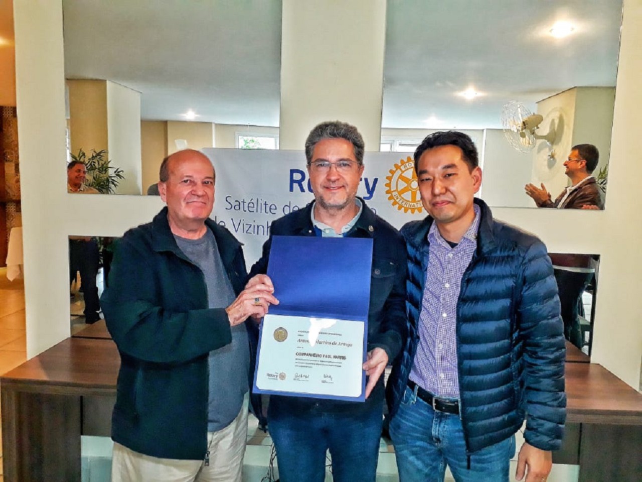 No dia 4 de agosto os companheiros do Rotary de São Paulo ? Saúde realizaram com os companheiros do Rotary Satélite de São Paulo Saúde ? Vizinhança solidária um companheirismo. Na ocasião o RSP Saúde homenageou com um Título Paul Harris para cada um dos seguintes companheiros do clube: Marcio Kazuo Watanabe, Eric Lieb, Antonio Martins de Araujo e Carlos Eduardo Nishio.