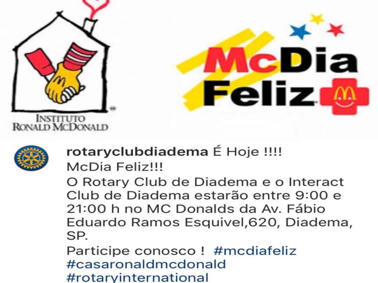 No último dia 25, sábado, o Rotary Club de Diadema, o Interact Club de Diadema, e os alunos e Colaboradores da Sodiprom - Camp Diadema, realizaram uma grande festa na campanha do McDia Feliz 2018.