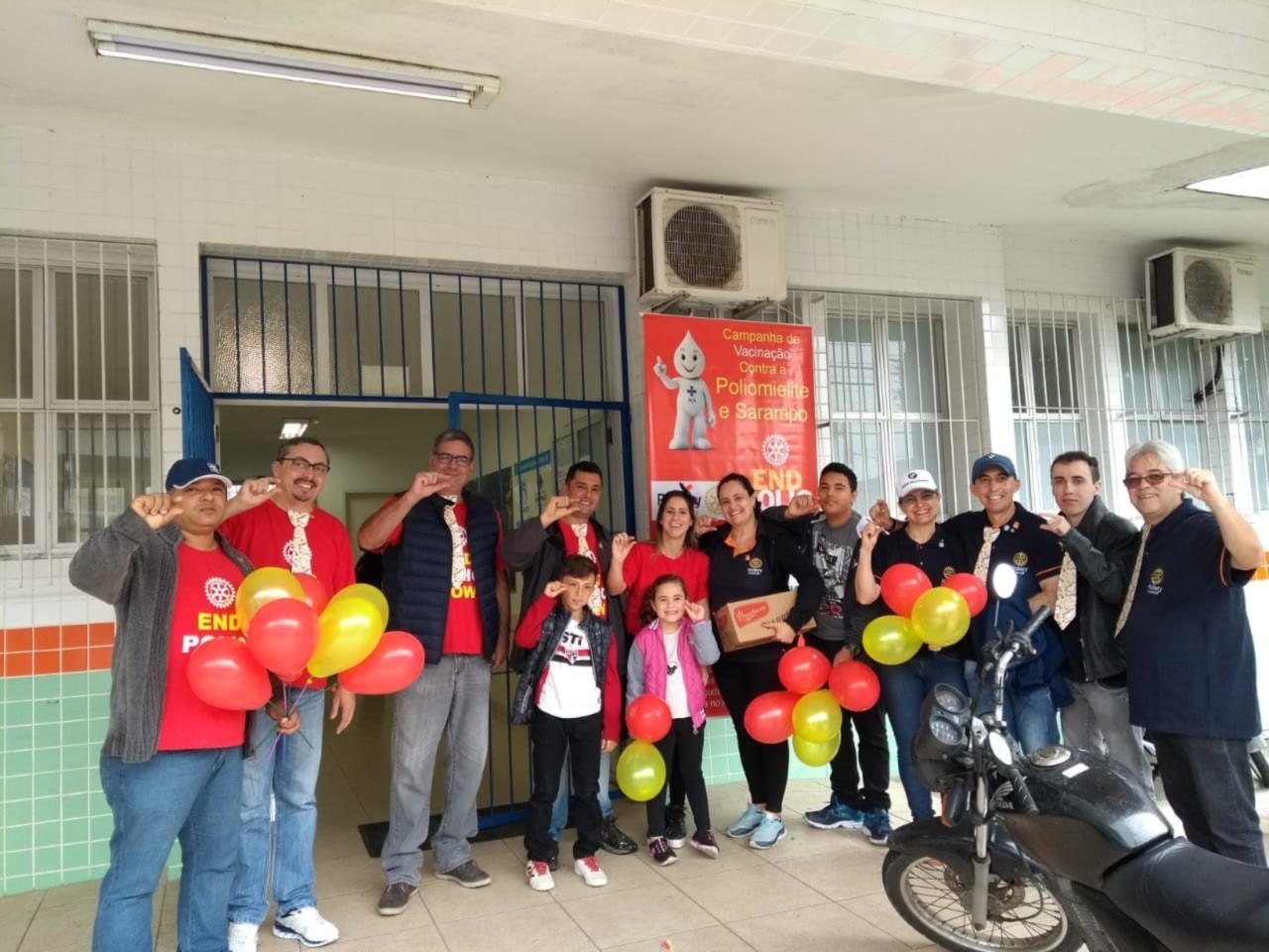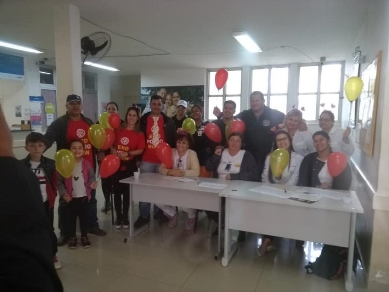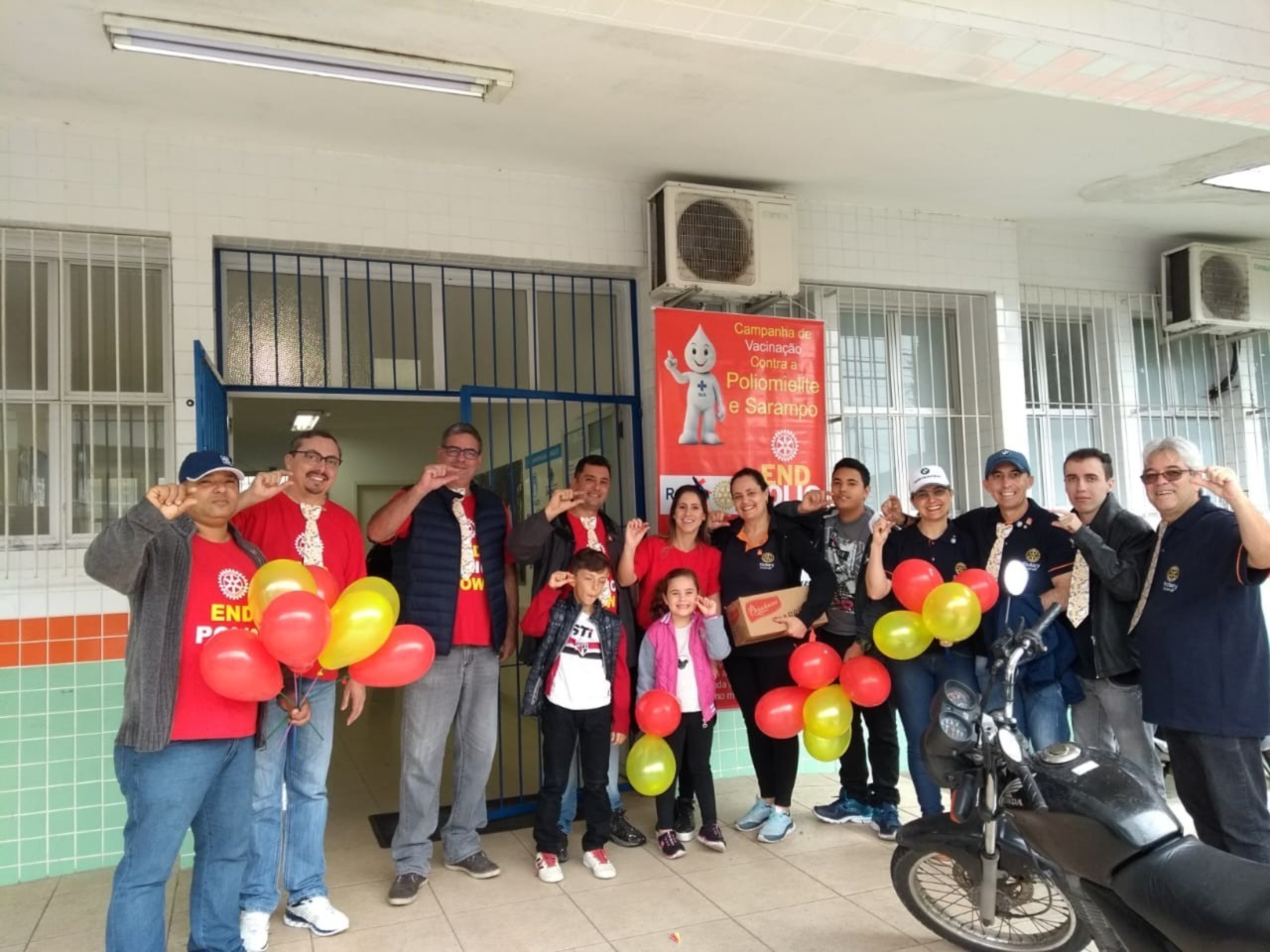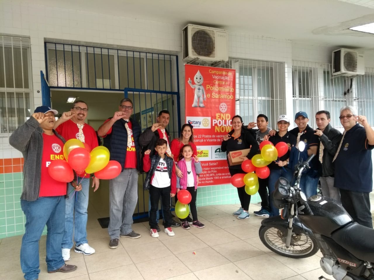 Rotary Club de Guarujá Distribuiu panfletos na rede pública de creches orientando sobre a importância da vacinação contra a Pólio e Sarampo, além de estar presente no posto de Saúde do Jardim dos pássaros em Guarujá no dia D.