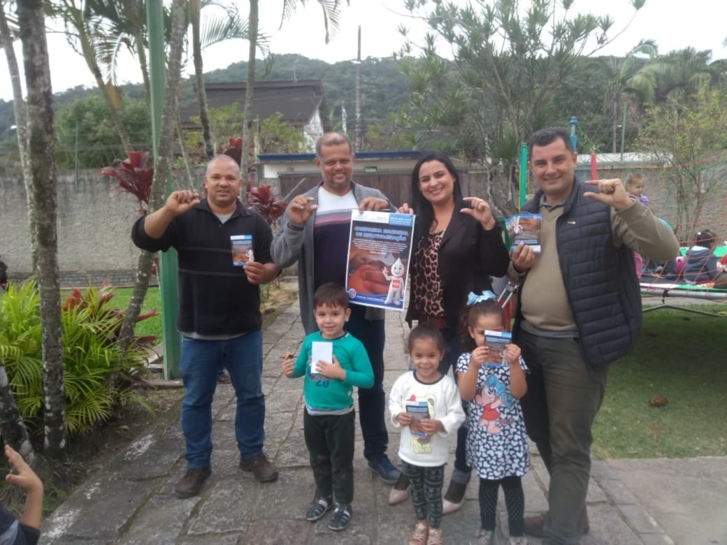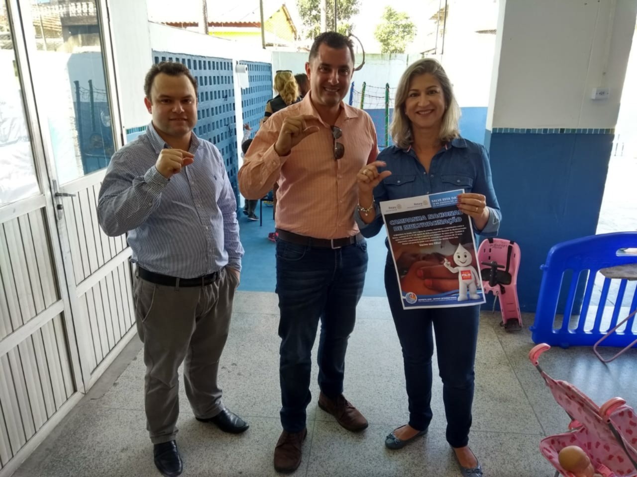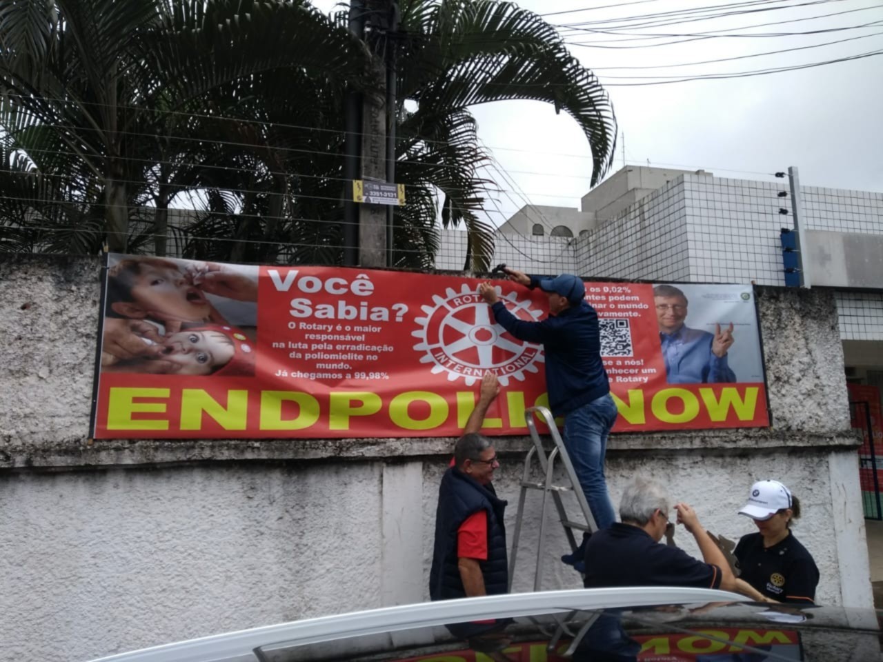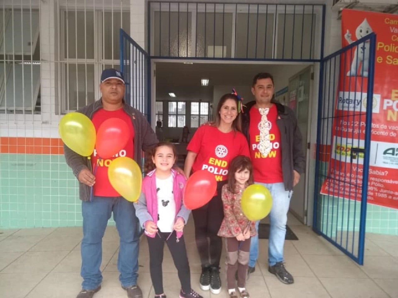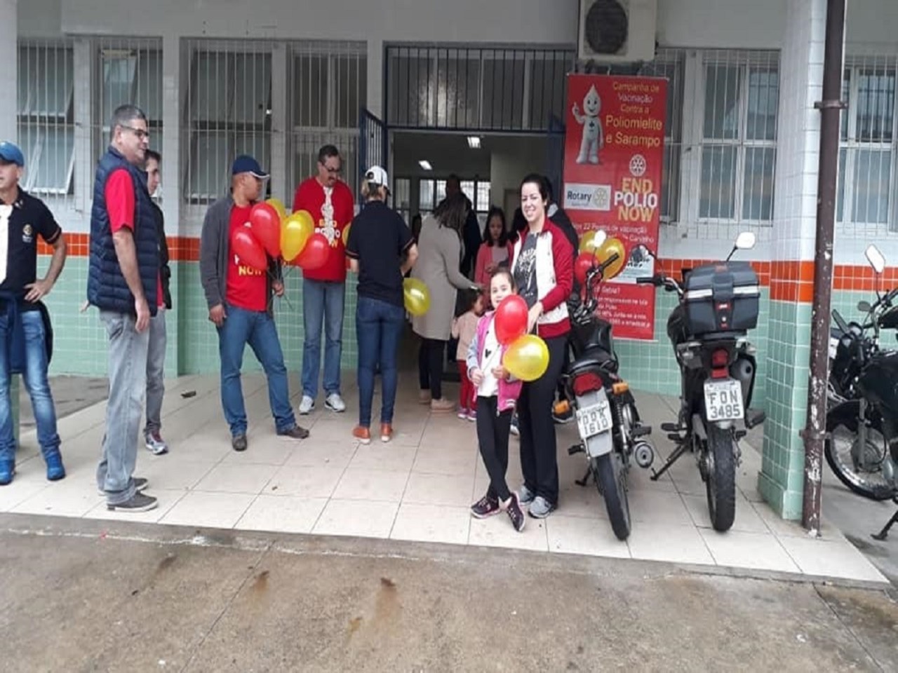 Rotary Club de Guarujá Distribuiu panfletos na rede pública de creches orientando sobre a importância da vacinação contra a Pólio e Sarampo, além de estar presente no posto de Saúde do Jardim dos pássaros em Guarujá no dia D.
