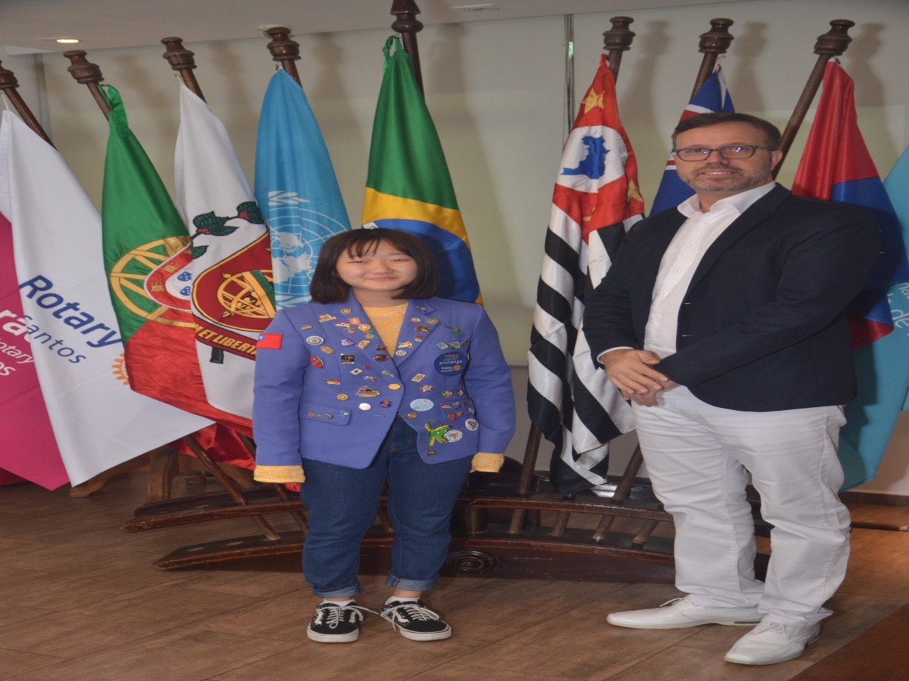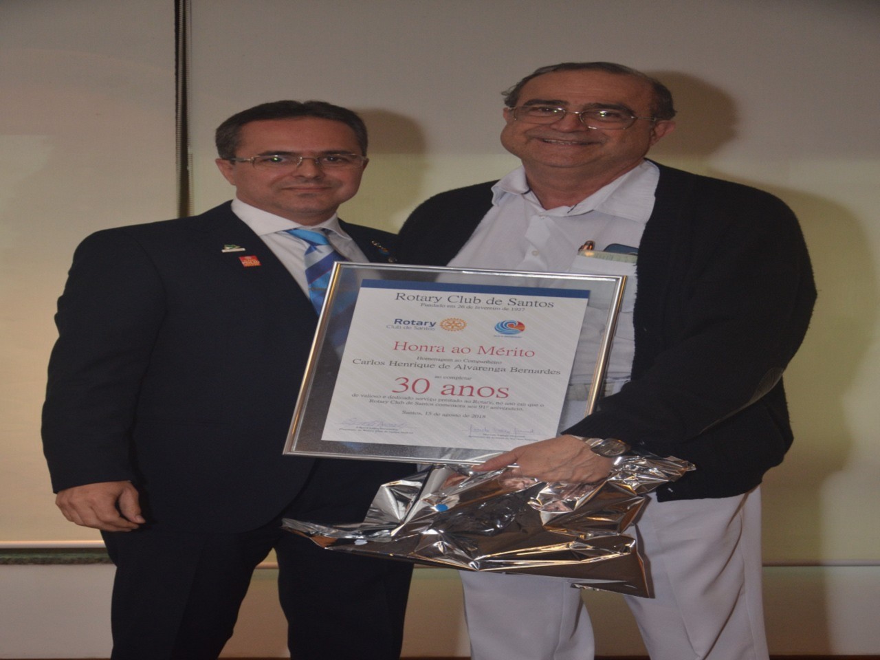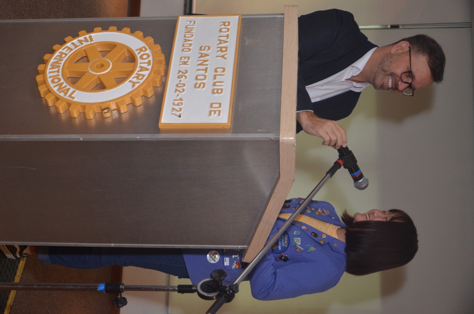 Na reunião do dia 15 de agosto tivemos a chegada da intercambista inbound do Taiwan Eva, que fez sua apresentação saudando todos os presentes, e a intercambista outbound Gabriela, que está indo para o Taiwan, fez sua apresentação de despedida. Logo após a apresentação, foi feita a entrega do quadro em homenagem aos 30 anos de admissão do Companheiro Carlos Henrique de Alvarenga Bernardes ao Rotary Club de Santos.