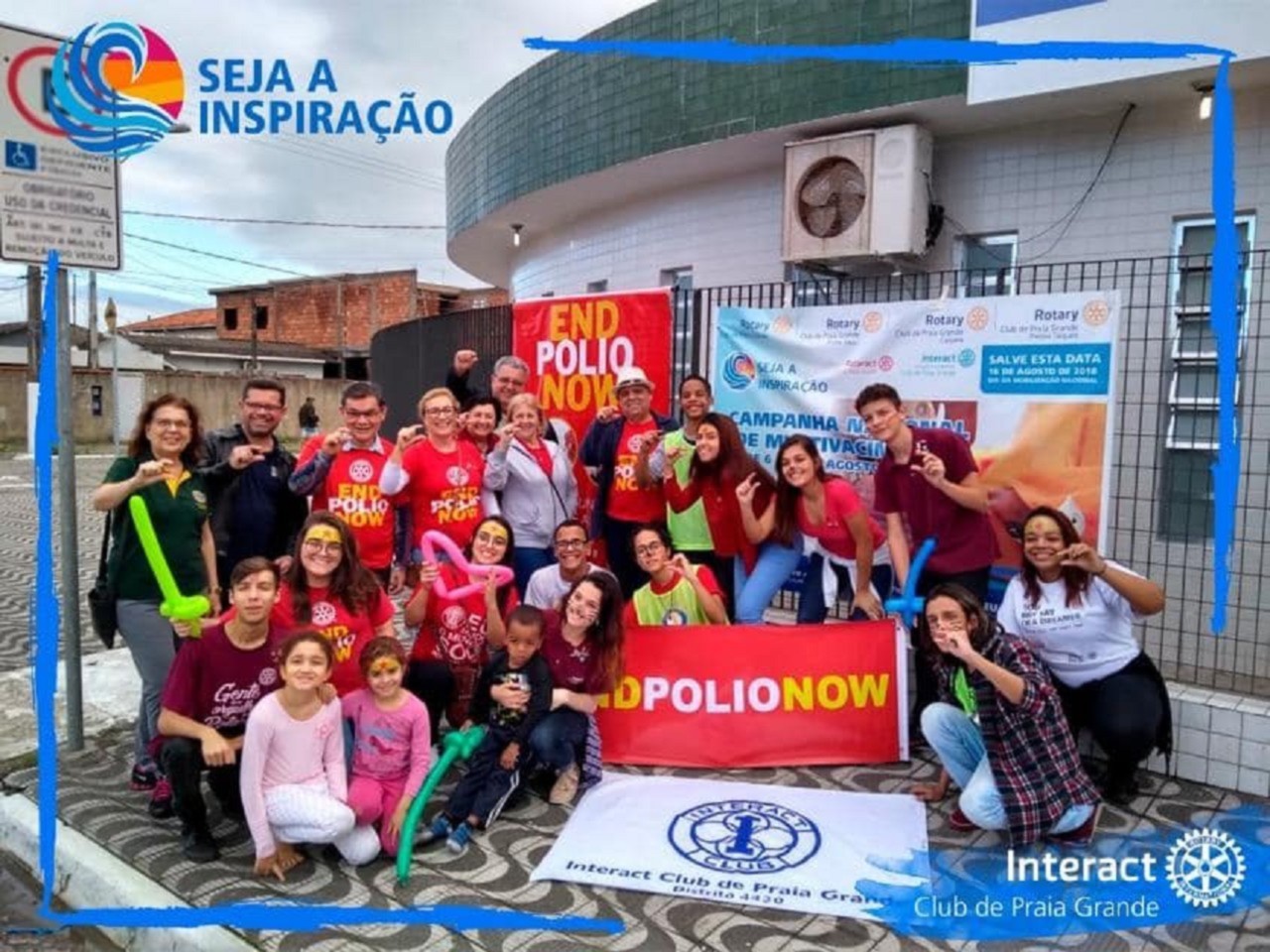 No sábado 18 de agosto, o Interact Club de Praia Grande realizou juntamente com seus companheiros de toda a família rotária de Praia Grande o Projeto de Conscientização do Dia D contra a poliomielite. Pela manhã o clube realizou uma intervenção no centro da cidade e pela tarde esteve presente na Usafa Tude Bastos onde foram feitas diversas atividades recreativas com as crianças presentes #128153;