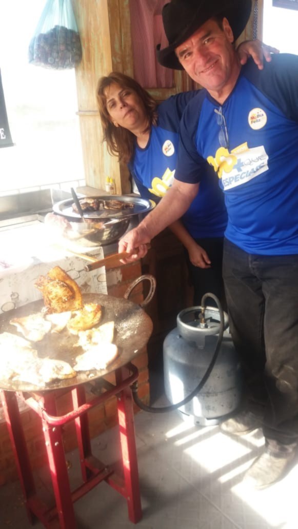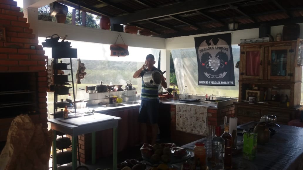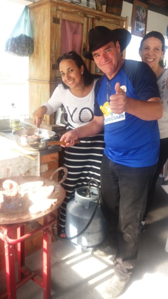 O primeiro damo, Silvio Ocione, comandou a cozinha e fez uma comida típica de sítio, um delicioso feijão tropeiro e carne de porco.